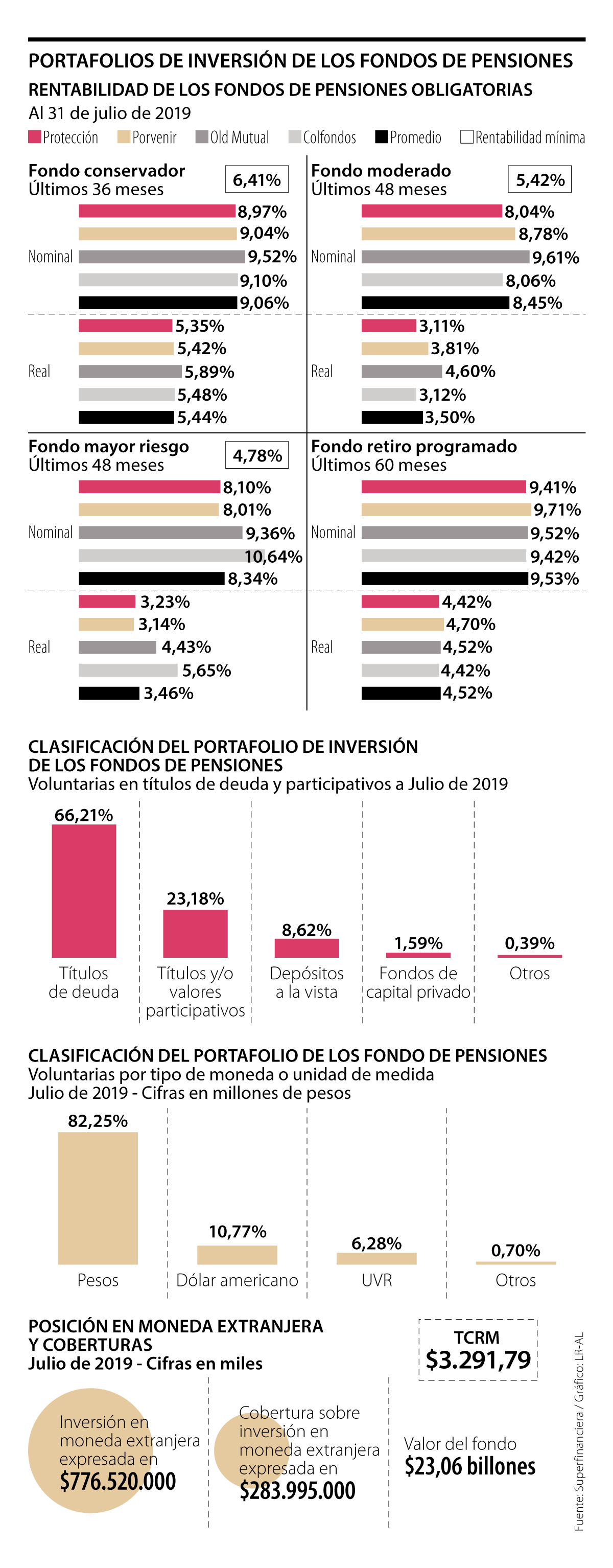 Por ejemplo, con corte a julio 31 del presente año Colfondos era la administradora con la mejor rentabilidad en el de mayor riesgo con 10,64%, seguido de Old Mutual con 9,36%.