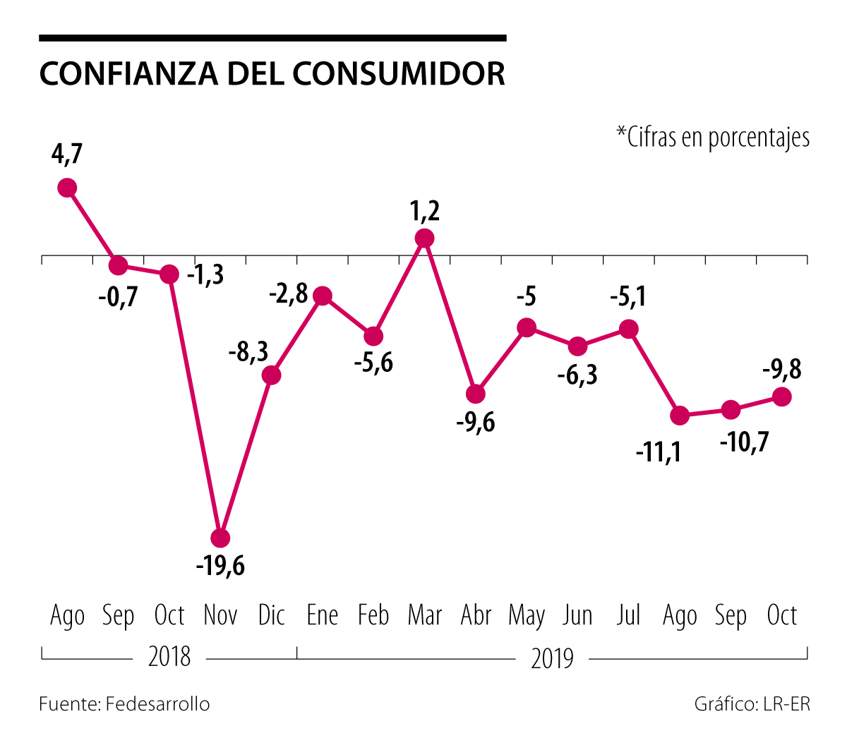 Una medición que permite conocer la percepción que tienen los ciudadanos sobre la economía es el índice de confianza del consumidor, que desde que inició el Gobierno solo ha logrado pasar a terreno positivo en dos ocasiones: agosto de 2018 y una leve recuperación en marzo de este año, con un balance de 1,2%. En su dato de octubre registró -9,8%. “Creemos que tiene que ver con el desempleo, ese es el elemento más importante que está afectando la confianza y el bolsillo de los hogares, y en la medida que no se revierta esa tendencia, va a ser muy difícil cambiar que la confianza sea negativa”, dijo Luis Fernando Mejía, director ejecutivo de Fedesarrollo.