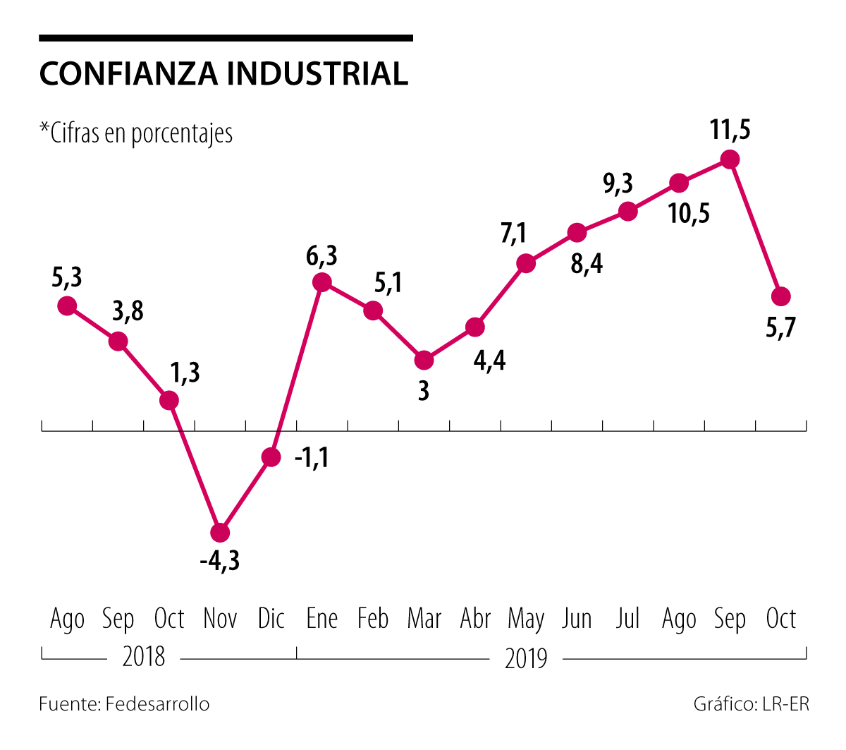 A diferencia de los consumidores, los industriales sí han mostrado indicadores favorables en su percepción de la economía. Aunque en noviembre y diciembre del año pasado el indicador cayó por dos meses con balances de -4,3% y -1,1%, en lo corrido del año ha mostrado cifras positivas todos los meses, una situación que se puede relacionar con la entrada en vigencia de la Ley de Financiamiento. A pesar de ello, la coyuntura de las últimas semanas, con la caída de la Ley y tres semanas de manifestaciones, podría incidir negativamente. “Se está percibiendo un escepticismo muy grande respecto a la capacidad de liderazgo del Gobierno y eso genera incertidumbre”, dice Arévalo.