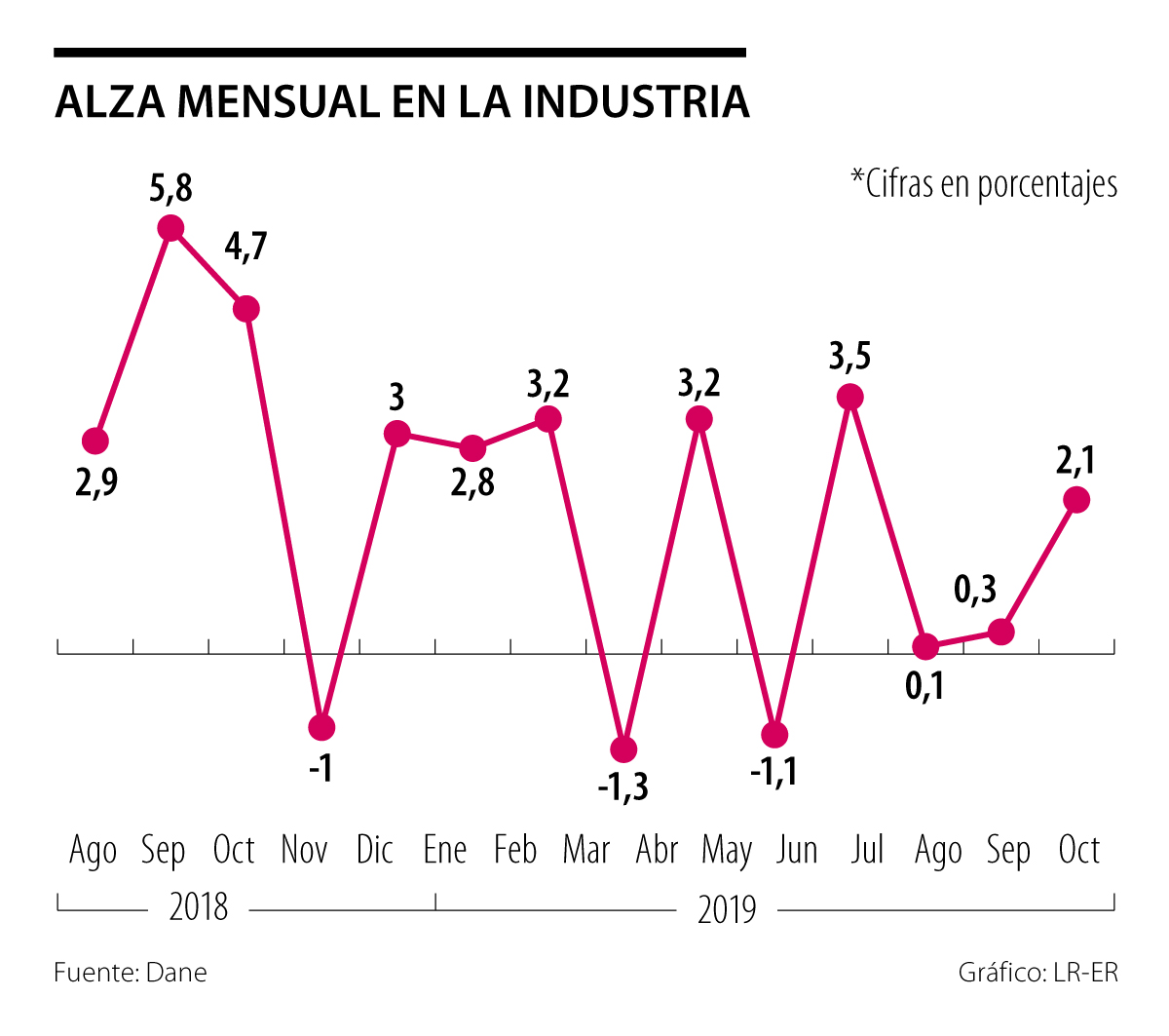 Aunque a principios de 2019 se habló de que la industria manufacturera venía consolidando una senda de recuperación, los crecimientos en el sector han sido incipientes en los últimos meses. En junio, la producción industrial incluso cayó 1,1% de acuerdo con las cifras del Dane, y aunque en el siguiente mes logró un mejor crecimiento, con 3,5%, en agosto y septiembre la industria volvió a presentar crecimientos tenues con variaciones de 0,1% y 0,3%, respectivamente. “Esto se debe al desbalance en la cuenta corriente, importamos más de lo que exportamos, y por eso no hay incentivos para que la industria nacional avance y crezca”, criticó González.