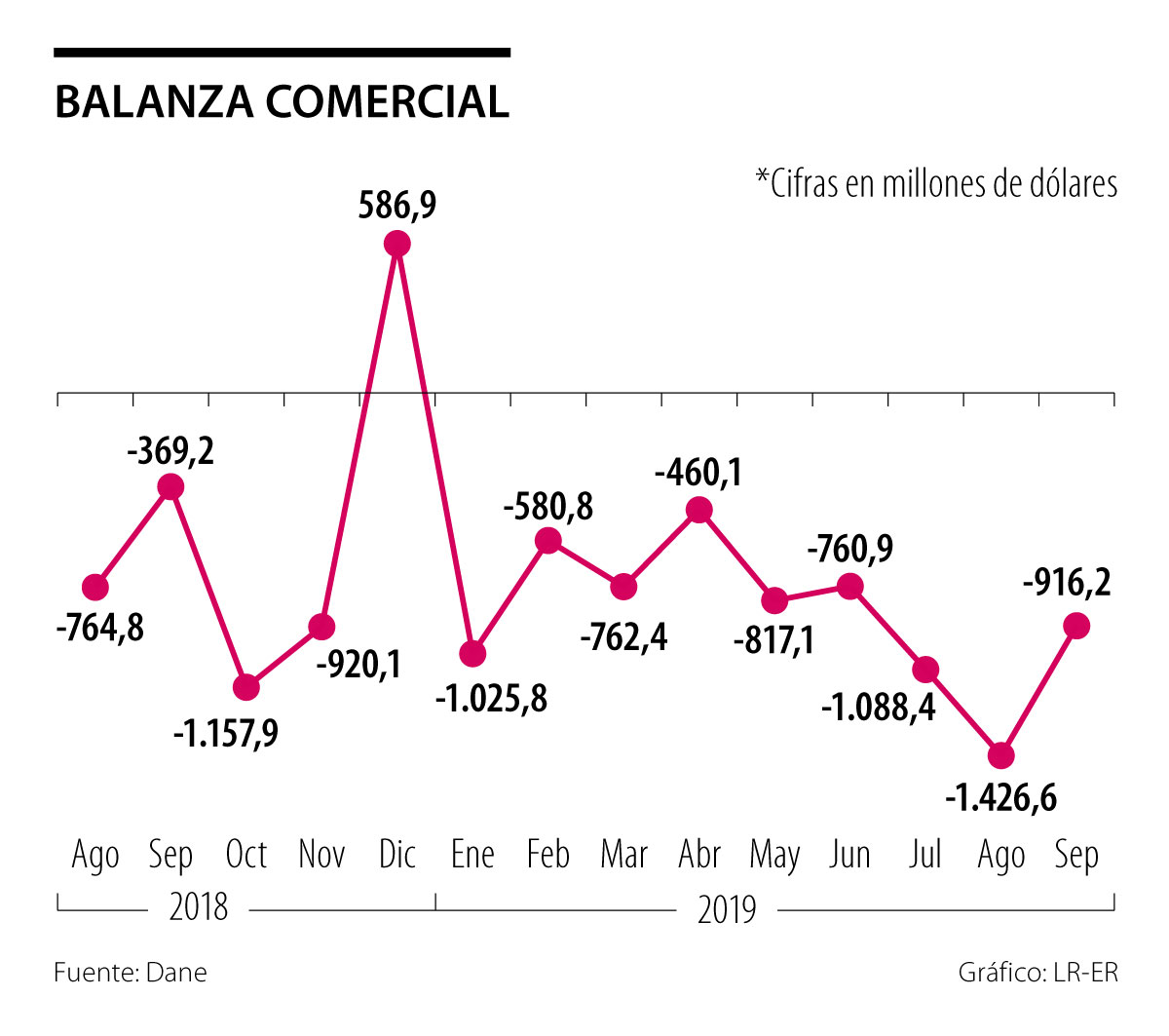 El déficit comercial, que entre enero y septiembre acumuló un saldo de US$7.805,3 millones, es un indicador que también ha llamado la atención. El presidente de Analdex aseguró que esta situación tiene que ver también con que, en contraste con las exportaciones, las importaciones han estado más dinámicas. “Es una buena noticia que muestra una mayor dinámica en la economía nacional, que está demando maquinaria, equipos y materias primas, y eso ha llevado a un mayor déficit en la balanza comercial” explicó Díaz, quien sostuvo que se espera que ese déficit empiece a cerrarse con una recuperación de las exportaciones diferentes a las minero energéticas.