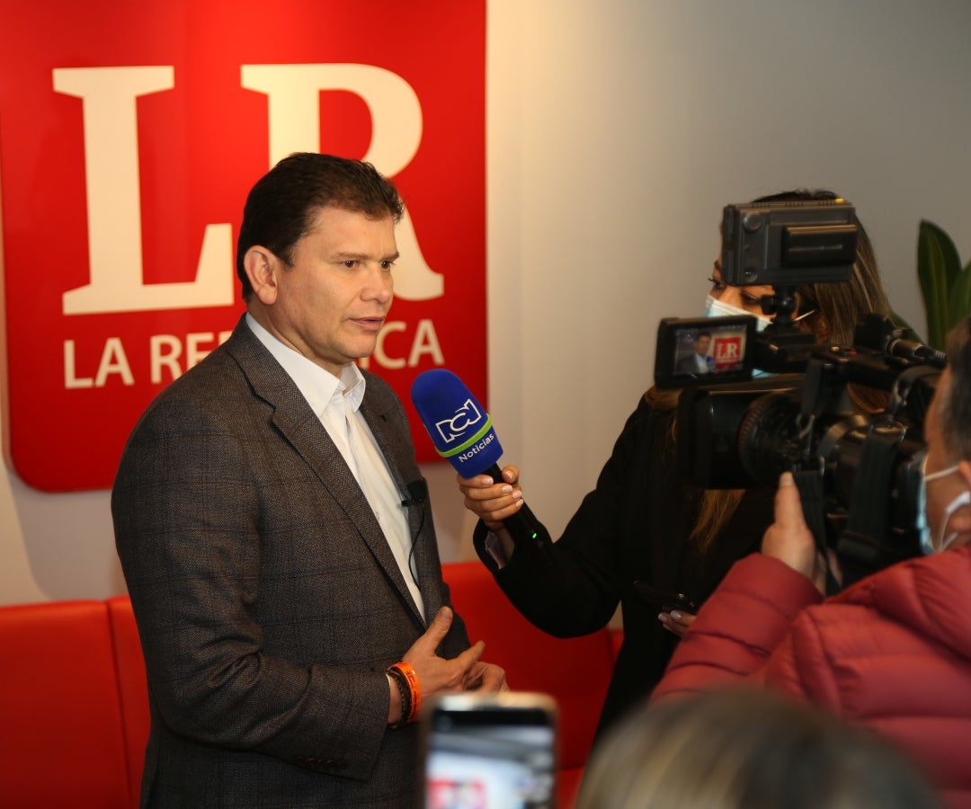 El candidato Luis Pérez Gutiérrez en la entrada de la Casa LR en entrevista con Noticias RCN luego del conversatorio.