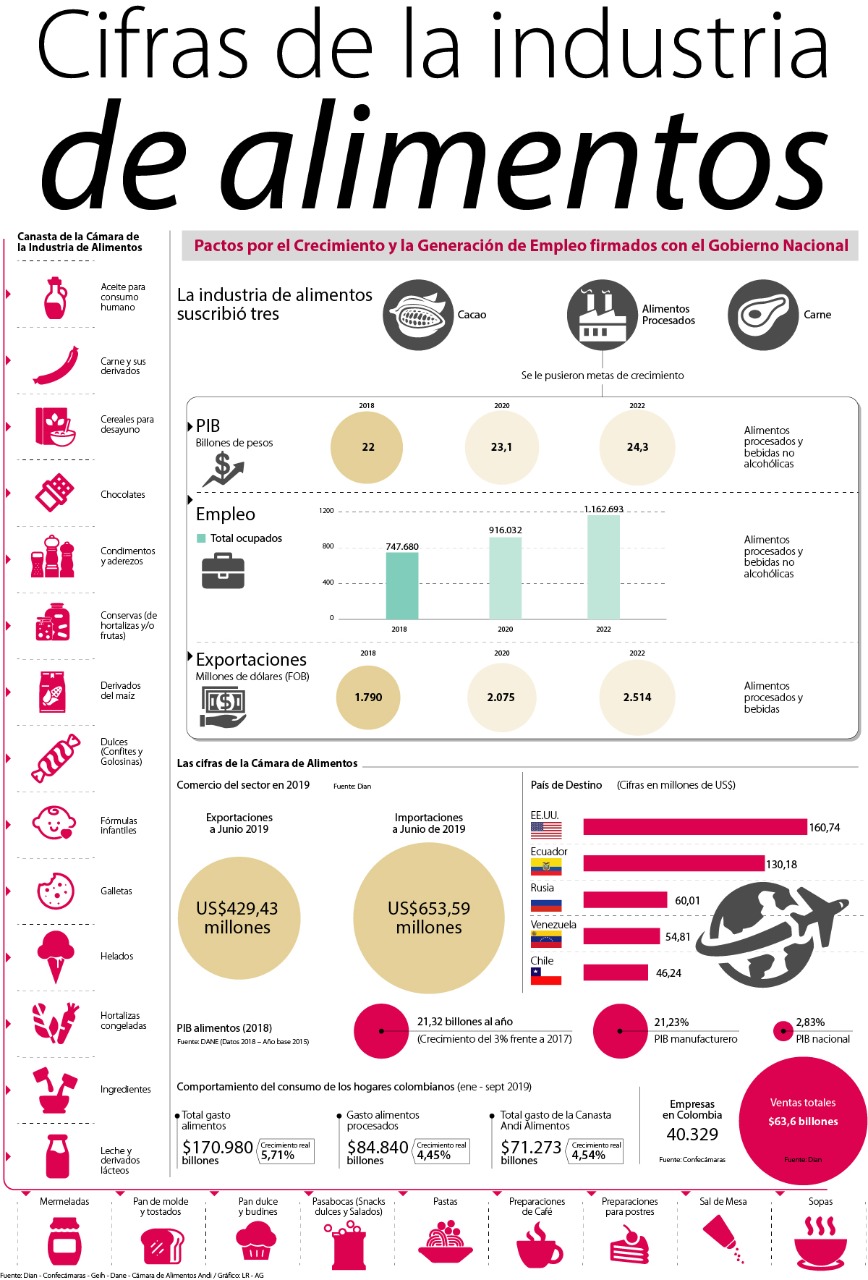La industria de alimentos en el país se mueve desde diferentes frentes desde los cuales se busca aportar al crecimiento económico de las distintas áreas de influencia. Esta industria tienen una importante generación de empleo, además que mueve de manera relevante tanto el comercio interno como el externo.