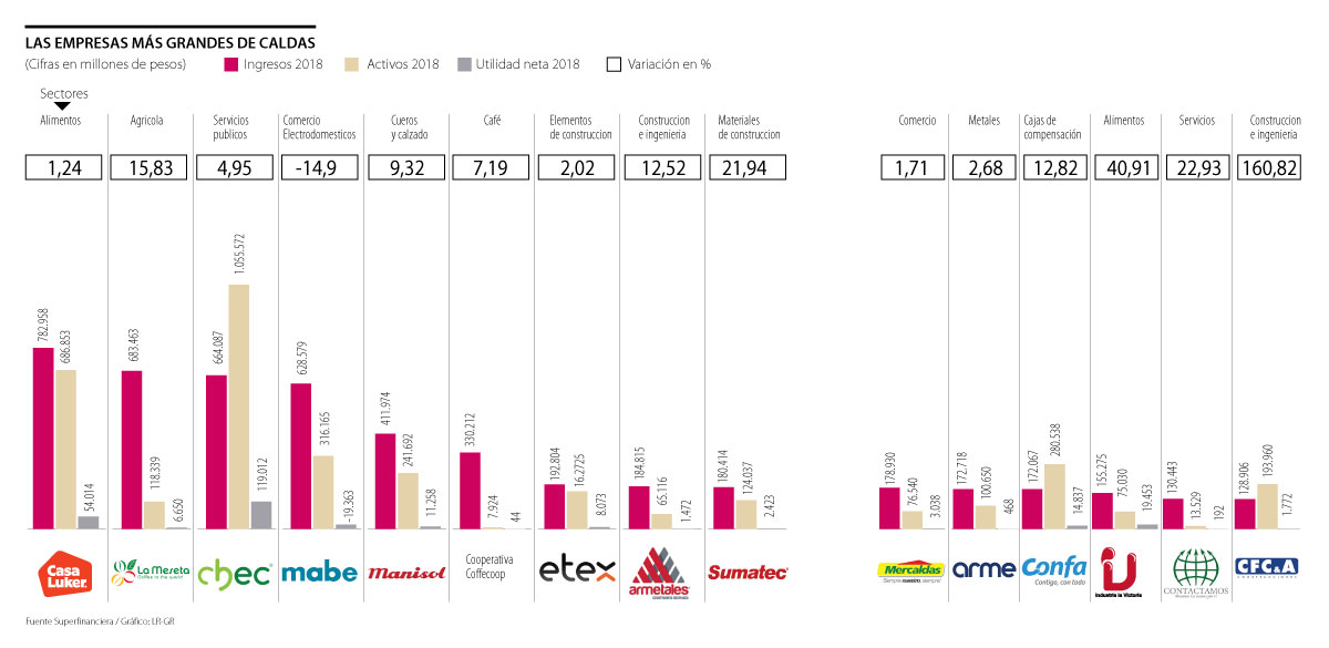 De acuerdo con el informe de la Superintendencia de Sociedades, Casa Luker lidera la lista de las empresas que más vendieron en el departamento de Caldas durante 2018. La compañía logró ingresos por $782.958 millones y alcanzó una utilidad neta de $54.014 millones.