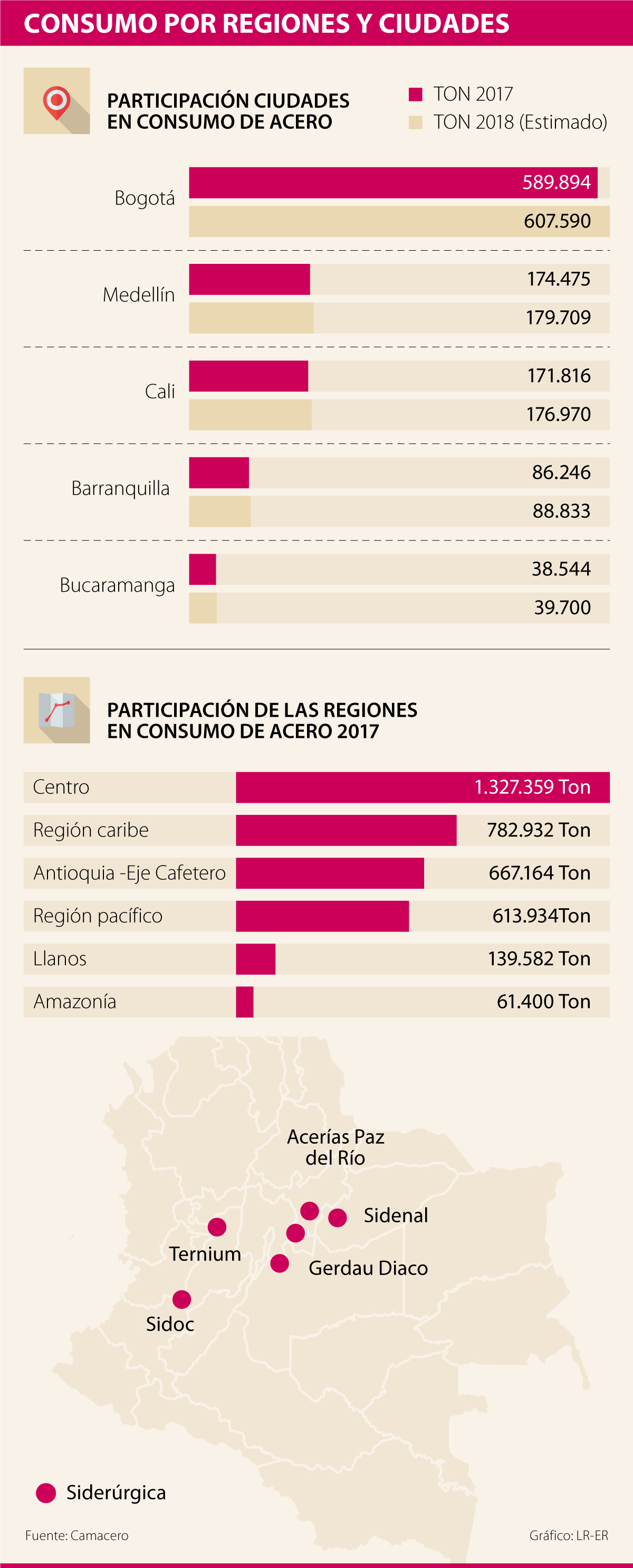 Colombia es un gran importador de acero, 2017 se importaron 2,2 millones de toneladas. Aunque en comparación con 2016 las importaciones cayeron 4%, Colombia tiene un ritmo de importación que por lo general se mantiene entre 2,4 millones y 2,5 millones de toneladas.