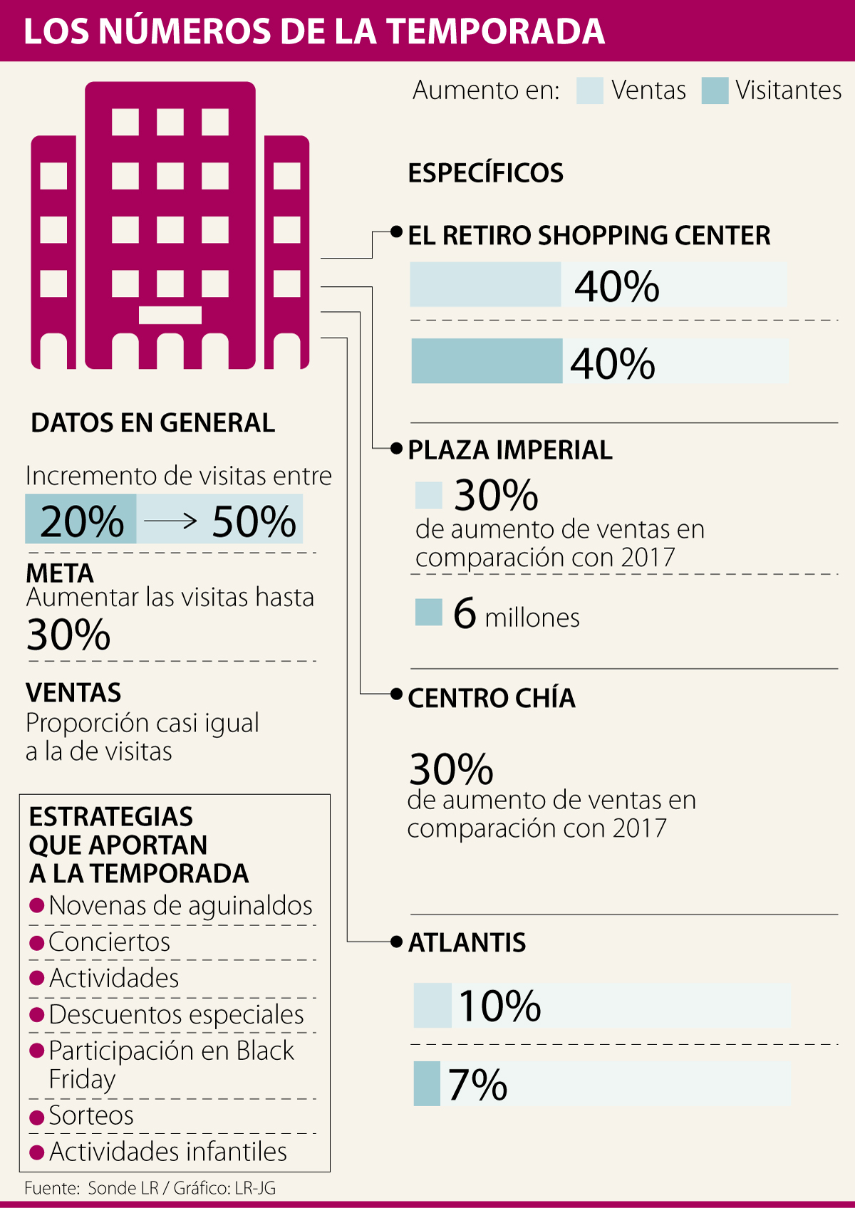 En el caso específico de Bogotá, los centros comerciales logran aumentar sus ventas hasta en 40% durante la temporada de fin de año.