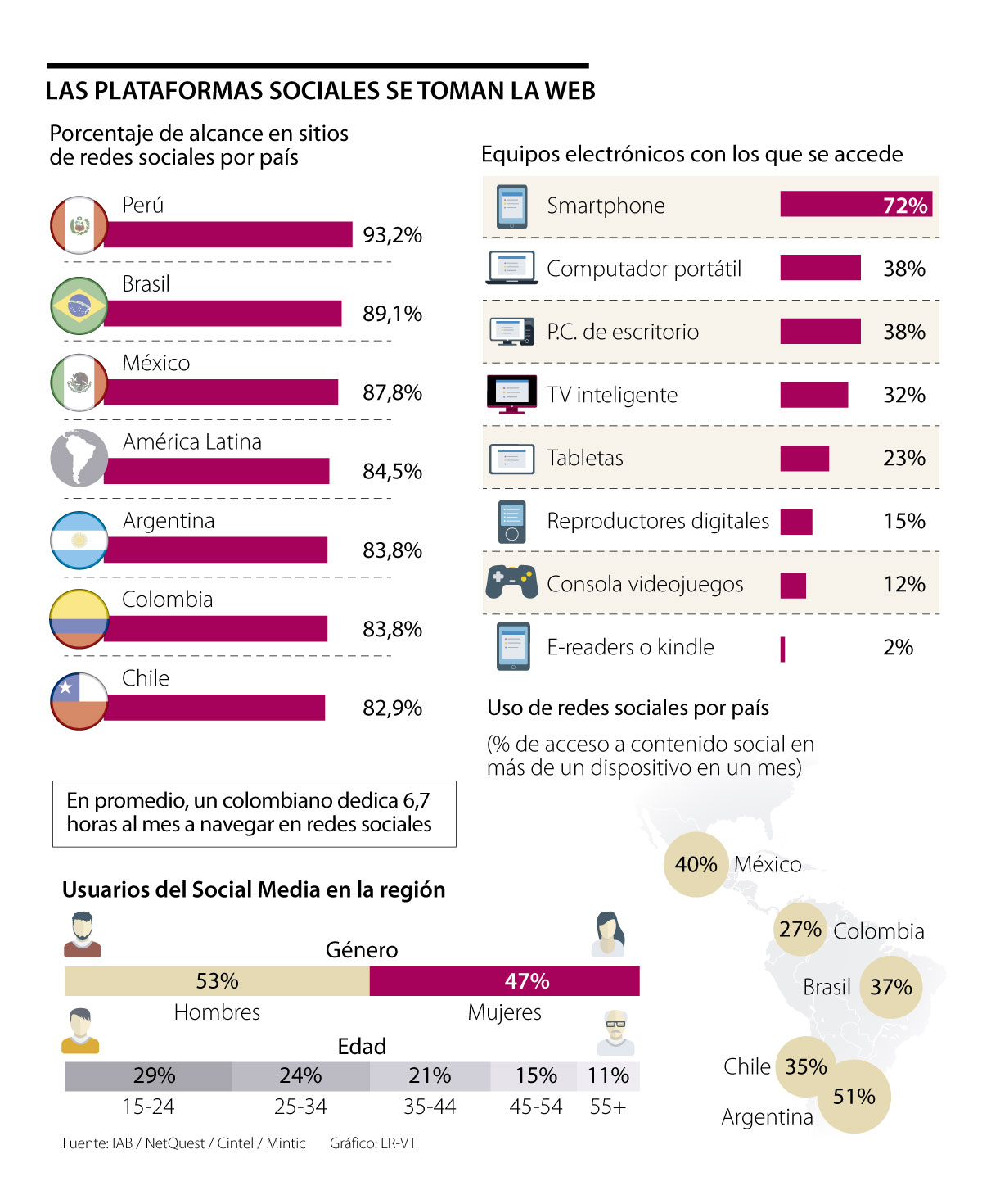 Hoy, de los casi 28 millones de conectados, ComScore calcula que el alcance de la social media es de 83,8%. Es decir que por cada 10 personas con un perfil en alguna red, ocho colombianos están activos.