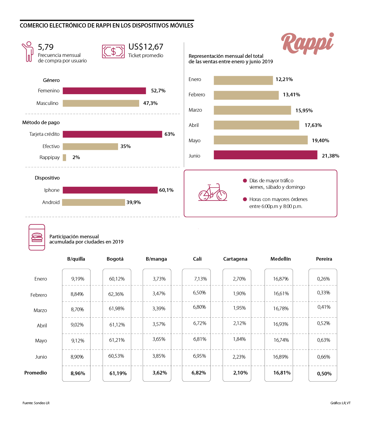 El unicornio colombiano reveló que el 52,7% de las compras en la app son hechas por mujeres, 63% pagadas con tarjeta de crédito y 60,1% a través de un iPhone. También explicó que, en promedio los usuarios hacen 5,7 compras al mes por valores que rondan los US$12,67.