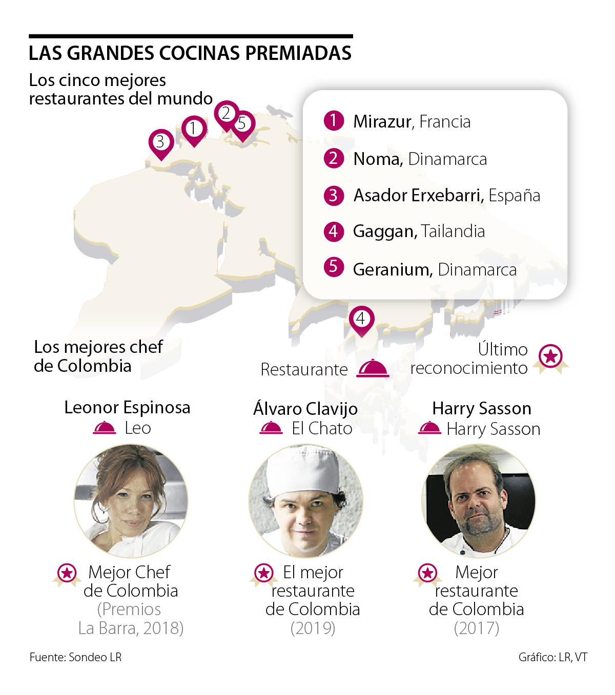 En Colombia, los principales restaurantes son una viva representación de las diferentes culturas del país y sus gastronomías llevadas a un nivel superior. Un factor común es el uso de ingredientes producidos por agricultores locales y que sean únicos de la región, un factor que resalta el chef Jorge Rausch.