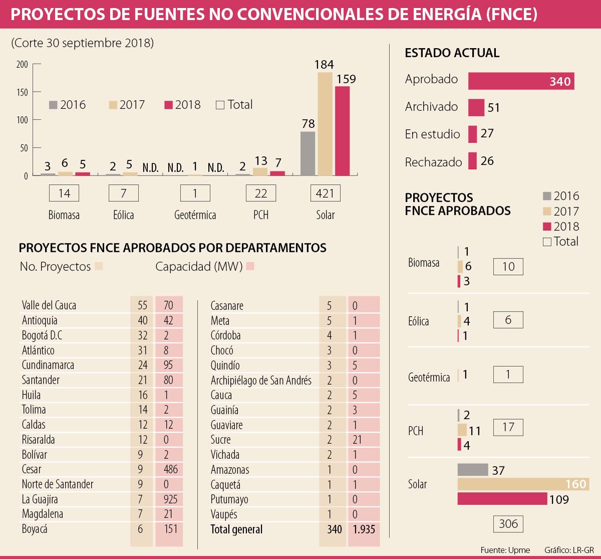 “Aunque la capacidad instalada en fuentes no convencionales de energías renovables se encuentra en alrededor de 10% de la capacidad instalada nacional de acuerdo al Paratec de XM, se han implementado en algunas granjas y techos del país más de 20MW de energía solar fotovoltaica y una capacidad similar en energía eólica en La Guajira; además se han registrado en la Upme más de 300 proyectos para participar por incentivos tributarios de este tipo según la reglamentación de la 1715”, explicó el profesional de desarrollo experimental Cidet.