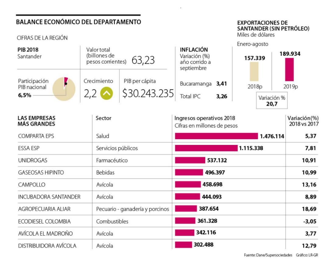 Se destacan los crecimientos de compañías como Comparta EPS, Essa ESP, Unidrogas S.A., Gaseosas Hipinto S.A.S., Campollo S.A., Incubadora Santander S.A.