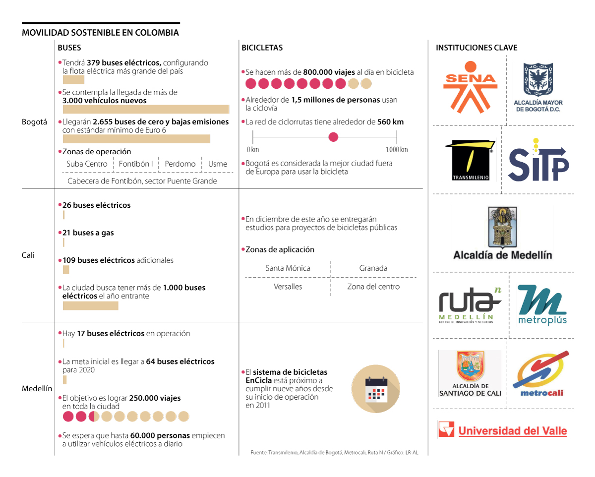 Bogotá busca incluir más de 3.000 buses con tecnologías de baja emisión desde principios de 2020 y Medellín más ciclorrutas