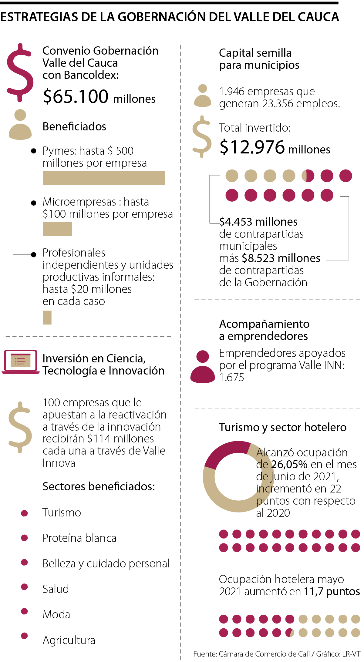 Líneas de crédito, capital semilla, inversión en innovación y generación de empleo son algunas de las iniciativas con las que la gobernación del Valle del Cauca y sus alcaldías buscan potenciar el dinamismo empresarial y apostarle al crecimiento del departamento, luego de la crisis ocasionada por el covid-19.