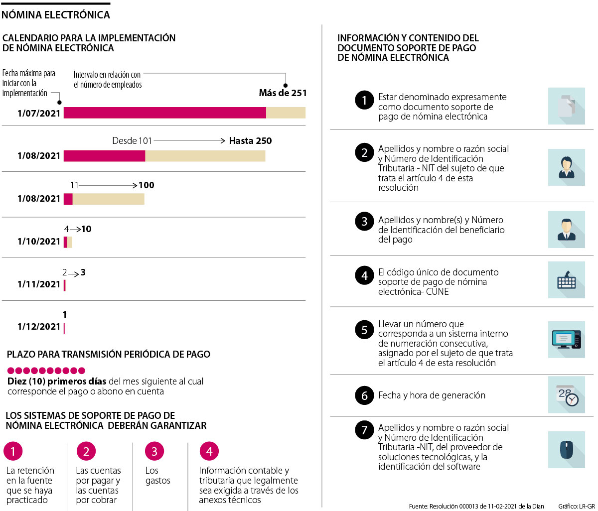 El calendario para implementación de nómina electrónica comenzará en julio de este año y se extenderá hasta marzo de 2022