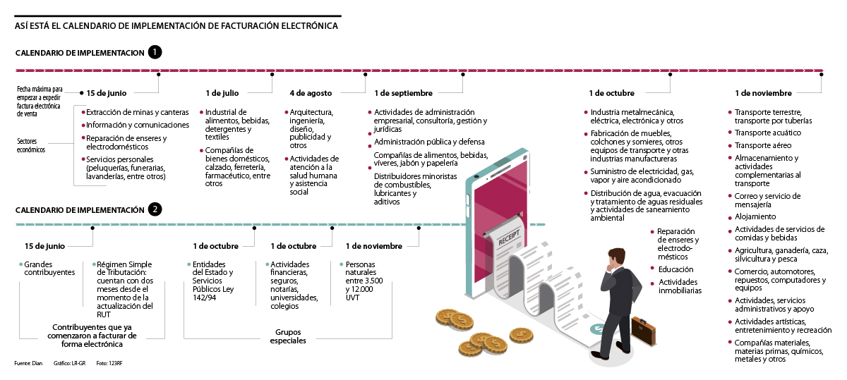 Adicional a ello, el gerente de factura electrónica de la Dian, Mario José Márquez Olier, destacó que las actividades económicas y empresarios que las realizan tienen una “gran heterogeneidad”, reflejando que no era posible que todas iniciaran a facturar en el mismo momento, “en una especie de big bang”. “Por ello, fue necesario definir un cronograma a través del cual se tuviesen en cuenta las diferencias de los actores y hacerlo aplicable a la realidad”, dijo.