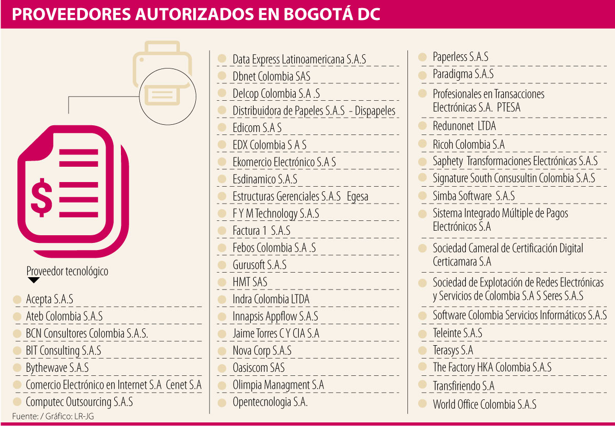 En total, a la fecha la Dian notificó a 61 proveedores autorizados en hasta siete ciudades diferentes, siendo Bogotá la de mayor oferta con 44 posibilidades tecnológicas, seguido de Medellín y Cali con seis y cinco, respectivamente.