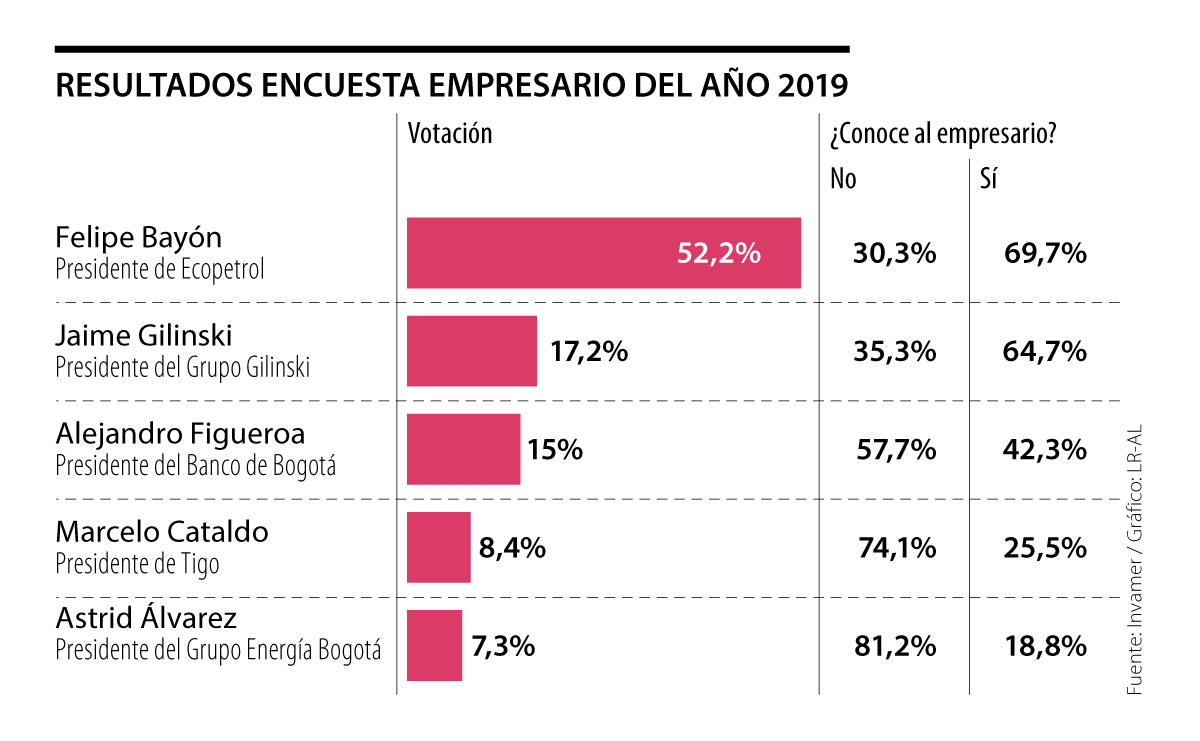 Los resultados de la encuesta también develaron que Bayón es uno de los más conocidos entre los empresarios, pues 69,7 % dijeron hacerlo.