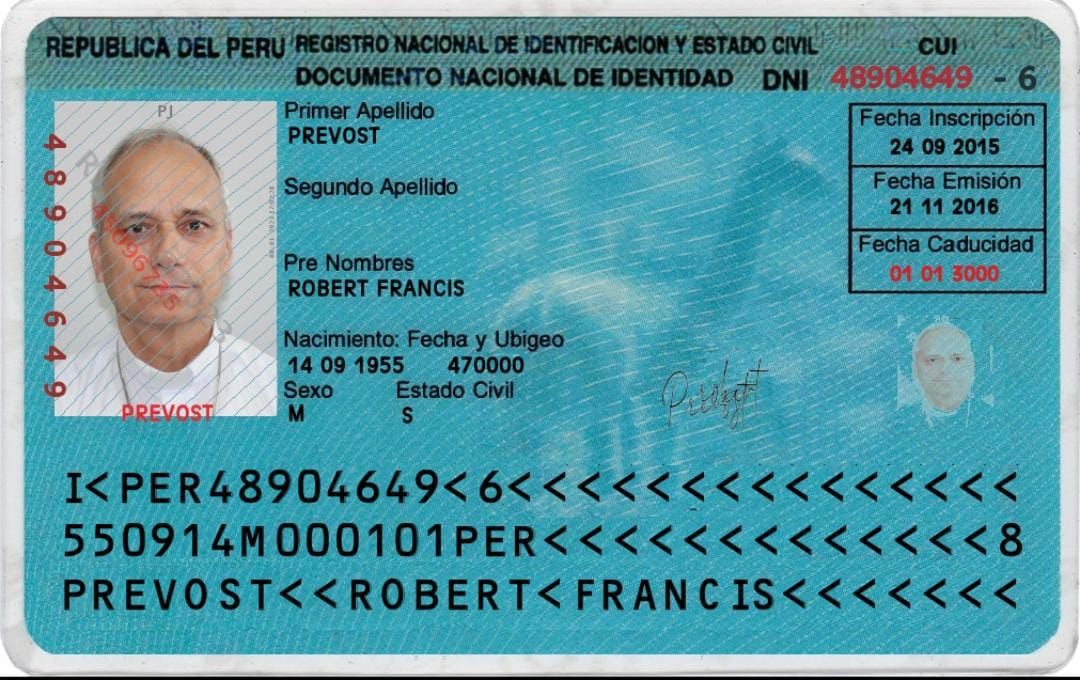 Nacionalidad peruana del Papa. Este es el DNI de Robert Prevost, otorgado por Perú.