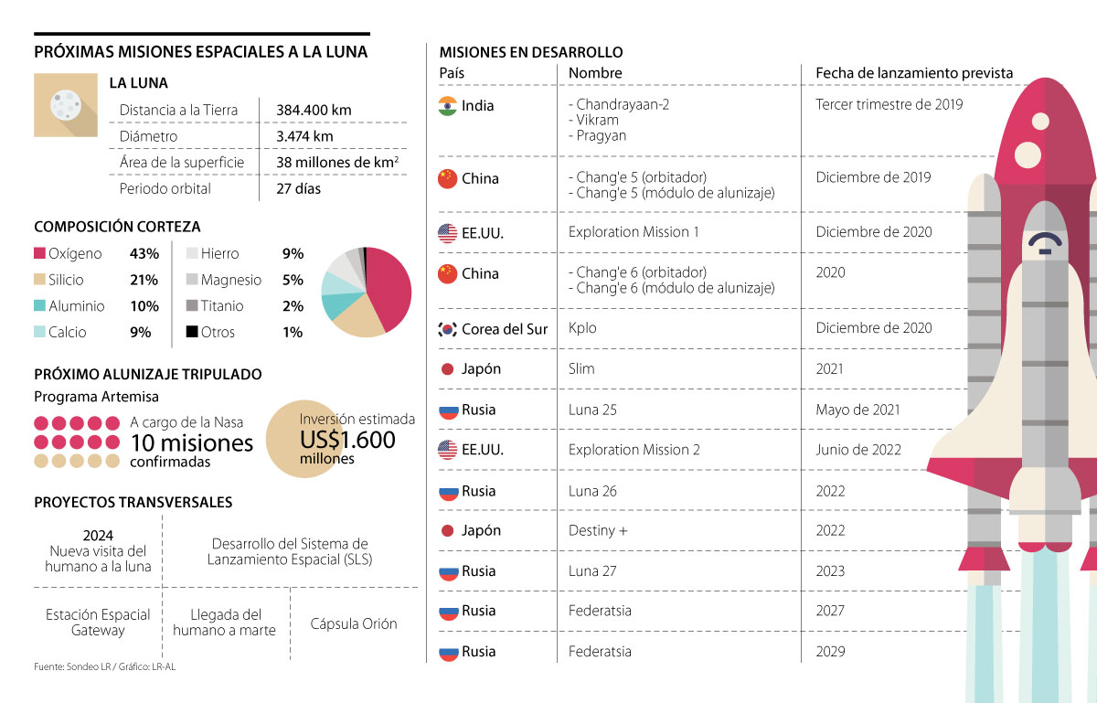 Aunque EE.UU. lidera la carrera por volver a pisar la Luna, Rusia, Japón, Corea e India también trabajan en misiones y programas lunares para la próxima década