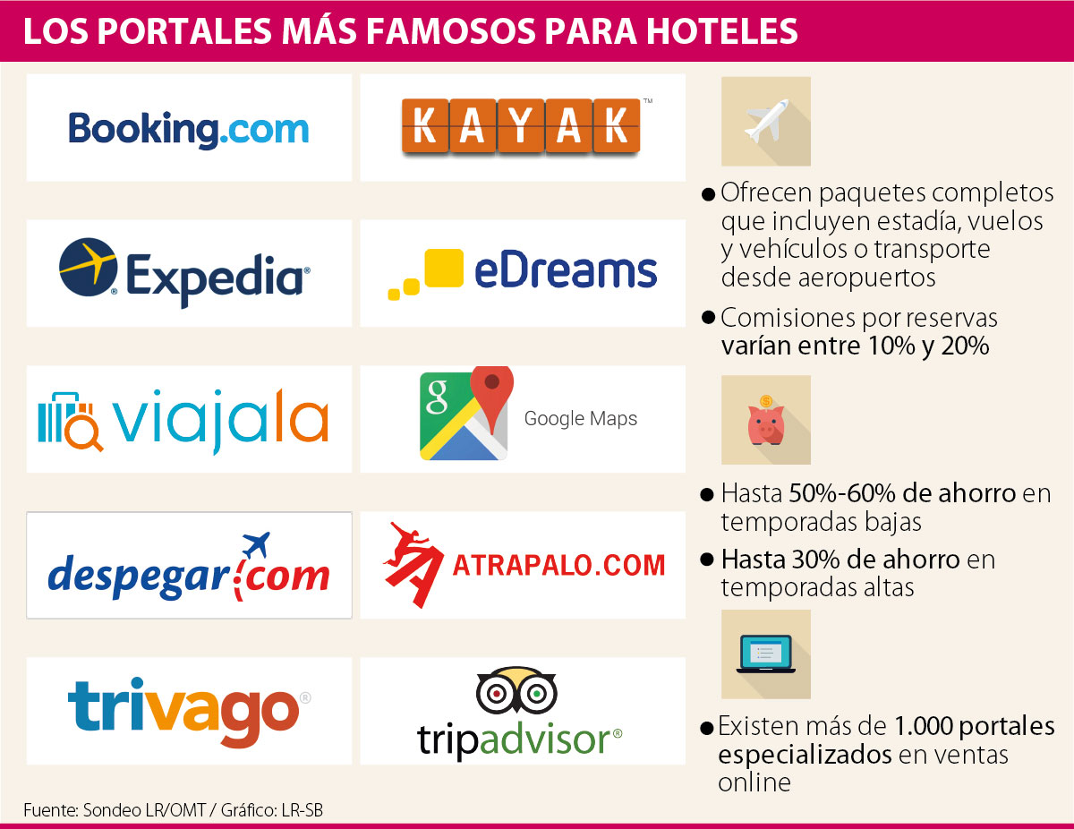 De este modo es que entre las plataformas más conocidas se encuentran Booking, Trivago, Despegar.com, eDreams, Kayak, Atrápalo, TripAdvisor, Expedia, Viájala y Google Maps y otras, que en total suman en la actualidad más de 1.000 sitios web y aplicaciones con una oferta incalculable, respecto a las combinaciones que un usuario puede hacer en ítems como hospedaje y paquetes.