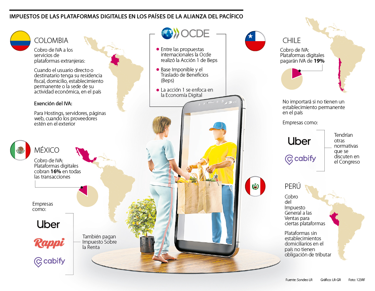 En los países de la Alianza del Pacífico (AP), la medida que ha primado hasta el momento es el cobro del IVA, que en realidad pagan los usuarios, pero, que se encarga de recaudar la plataforma digital que ofrece el servicio. En el caso de Colombia y Chile la tarifa del IVA es de 19%, mientras que en México es de 16%. Perú, es el único país de la AP que no tiene una normativa clara al respecto.