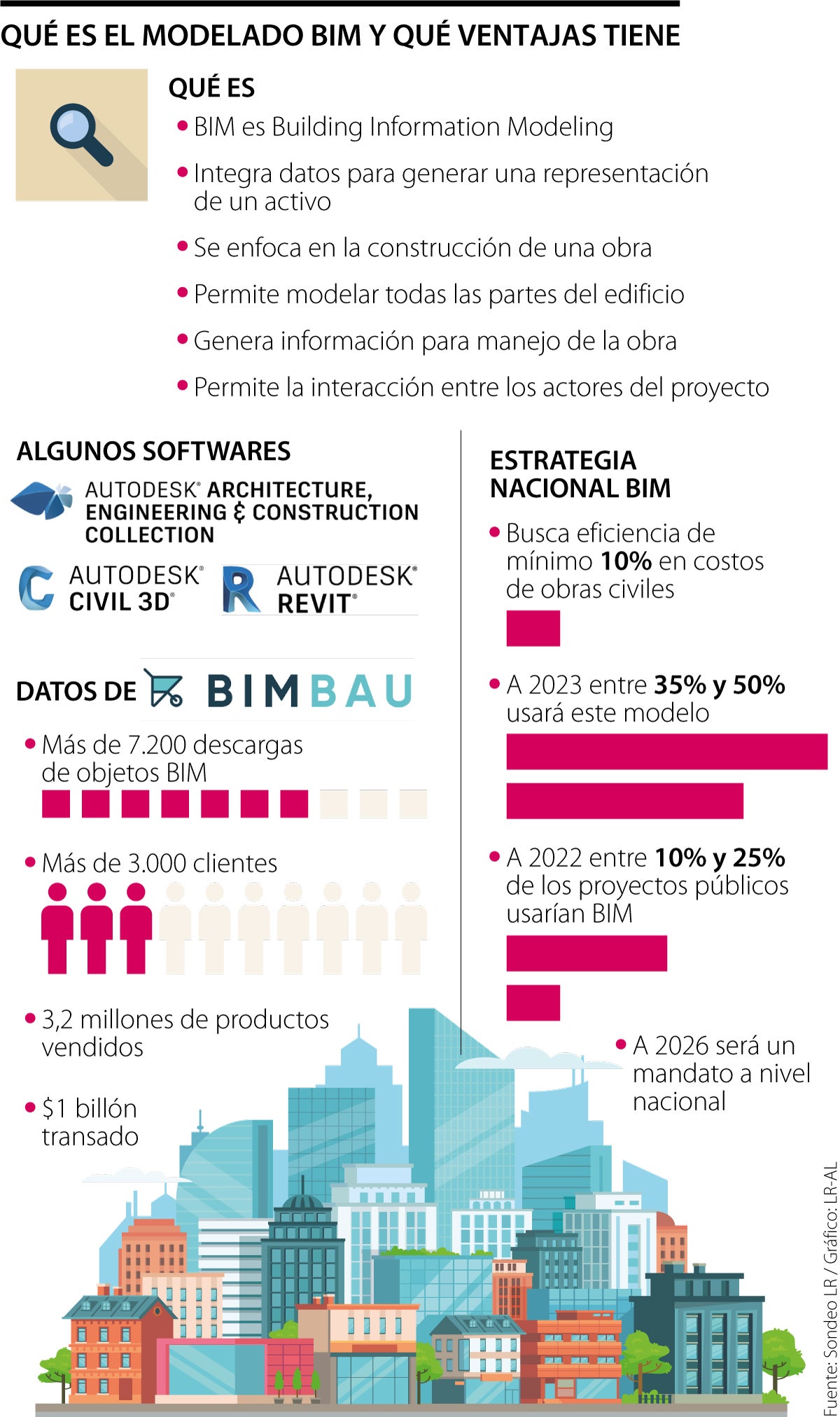 El BIM (modelado de información de construcción, por sus siglas en inglés), es una metodología de trabajo para la planeación, construcción y gestión de obras. “Es básicamente simular virtualmente la construcción de la obra con la información disponible para resolver cualquier situación de una obra”, explica Juan Alejandro Saldarriaga, CEO de Bimbau, una plataforma colombiana que opera como un marketplace de objetos BIM ya modelados de proveedores locales.