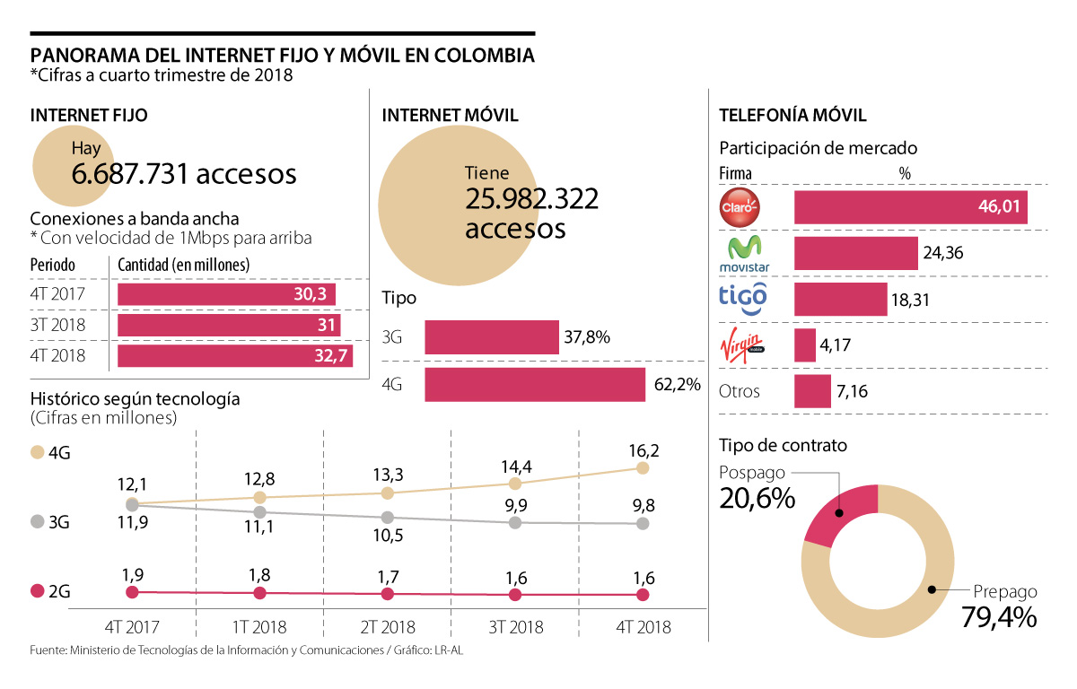Sin embargo, el directivo fue enfático en aclarar que no se trata de que el internet móvil esté reemplazando al fijo, “por el contrario lo está complementando. Si se revisan las cifras de crecimiento de las tres compañías con mayor participación, el negocio en fijos ha tenido un importante impulso”.
