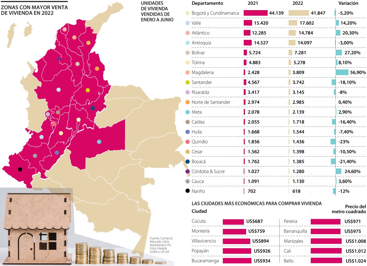 En los primeros siete meses de 2022 se han vendido 127.218 viviendas, la mayoría de ellas están ubicadas en Cundinamarca y Valle
