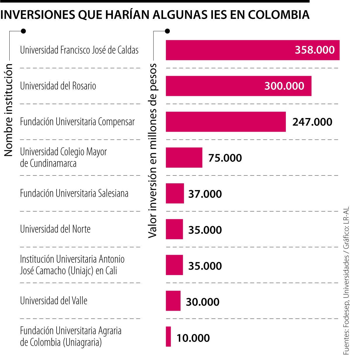 La Fundación Universitaria Compensar aprobó $247.000 millones para ampliar su sede en el Centro Urbano de Recreación (CUR) en Bogotá; la Fundación Universitaria Salesiana, destinará $37.000 millones para su sede San Bosco, en la Avenida del Dorado; y la Fundación Universitaria Agraria de Colombia está construyendo edificios en el norte de Bogotá, por $10.000 millones.