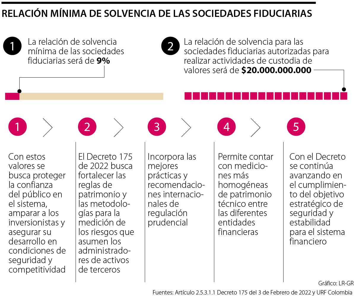 Esta nueva reglamentación, establece que la SFC controlará como mínimo una vez al mes el cumplimiento de la relación de solvencia. Por consiguiente, las fiduciarias deberán acatar este requisito en todo momento, independientemente de las fechas de reporte. Para la Unidad de Regulación Financiera (URF), esta medida permitirá que las entidades sean más sólidas y que cuenten con recursos patrimoniales suficientes ante pérdidas no esperadas.