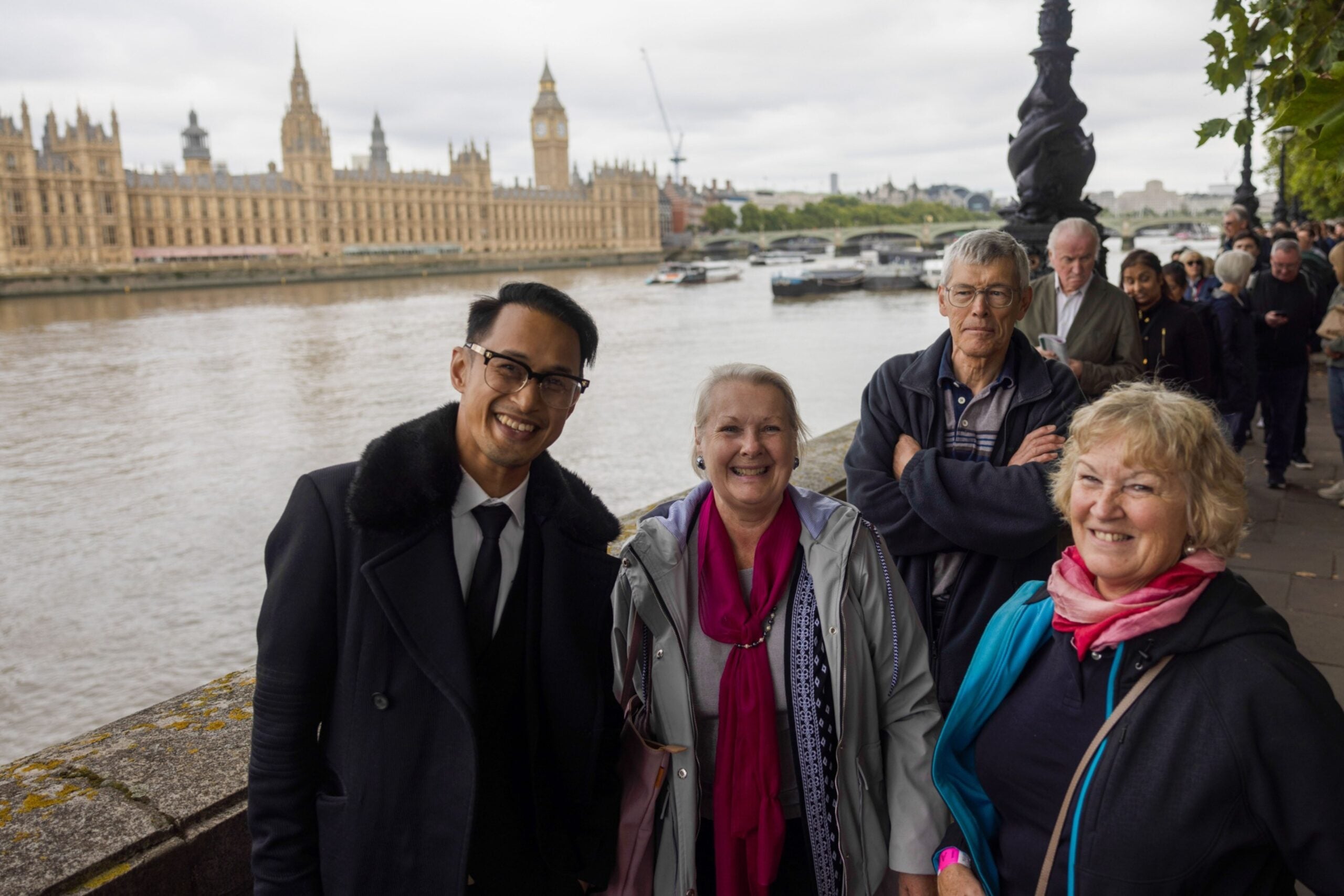 Pero en lo que podría ser la fila más grande de la historia de Londres, que el sábado serpenteó más de cuatro millas desde Westminster y a lo largo de la orilla del río Támesis, hay una narrativa más optimista. Hay cientos de miles de personas de todos los ámbitos de la vida, algunos preparados para hacer cola durante más de un día para ver a la difunta Reina en el estado.