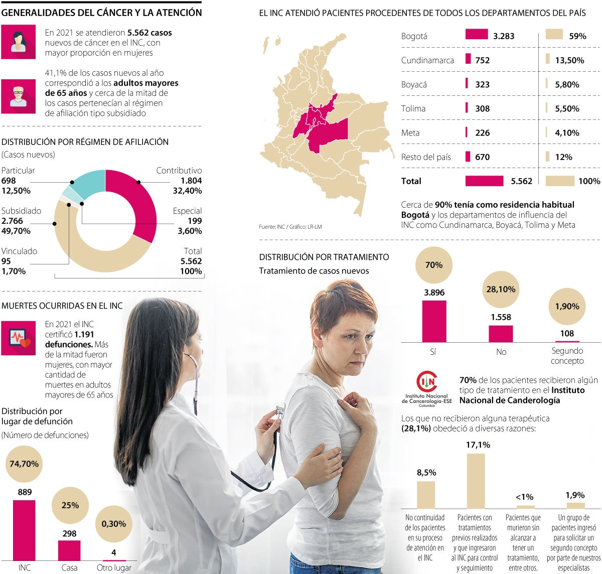 En cuanto a la procedencia de los pacientes, 59% de los que atendió el INC estaban en Bogotá y 13,5% en Cundinamarca