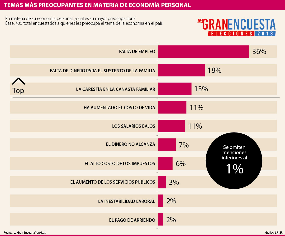 Meses previos a las elecciones de Congreso y Presidencia, la mayor preocupación de los ciudadanos tiene que ver con la falta de empleo, según arrojó La Gran Encuesta hecha por YanHaas para la gran alianza de medios.