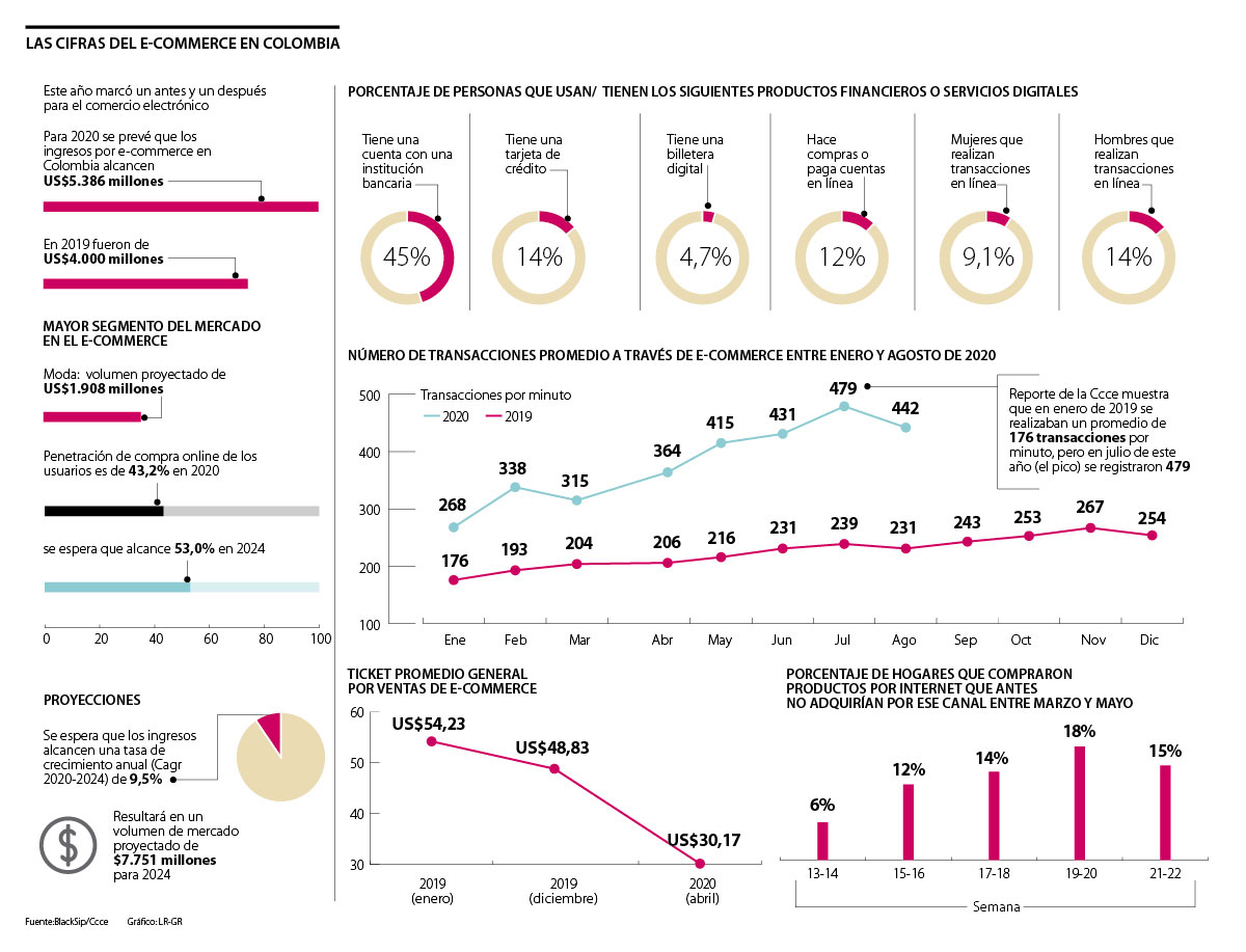 Las cifras lo demuestran. Según el reporte de industria: El e-commerce en Colombia 2020 realizado por BlackSip, se prevé que los ingresos por e-commerce en el país alcancen los US$5.386 millones al finalizar el año, una cifra bastante superior a la de 2019, cuando se facturaron US$4.000 millones.