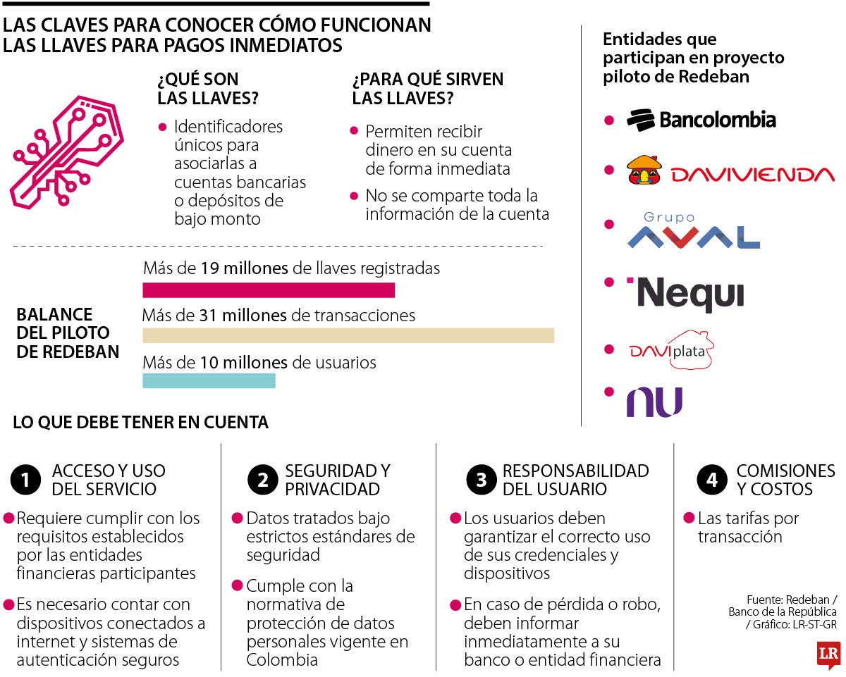 Desde ya se puede prever el modelo con las llaves del piloto creado por Redeban para preparar a las personas y las entidades financieras. Ana María Prieto, directora de Sistemas de Pago del Banco de la República, describió las llaves como una forma de identificación de los usuarios en el nuevo sistema Bre-B, siendo esencial para que los ciudadanos reciban sus pagos de manera inmediata.
