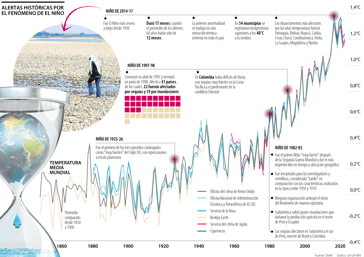 Pese a que esta sería la primera vez de un evento climático de tal magnitud, ya se habían lanzado alertas similares por incrementos en la temperatura. En menos de un siglo, el mundo ha atravesado cuatro fenómenos de El Niño catalogados como “muy fuertes”.