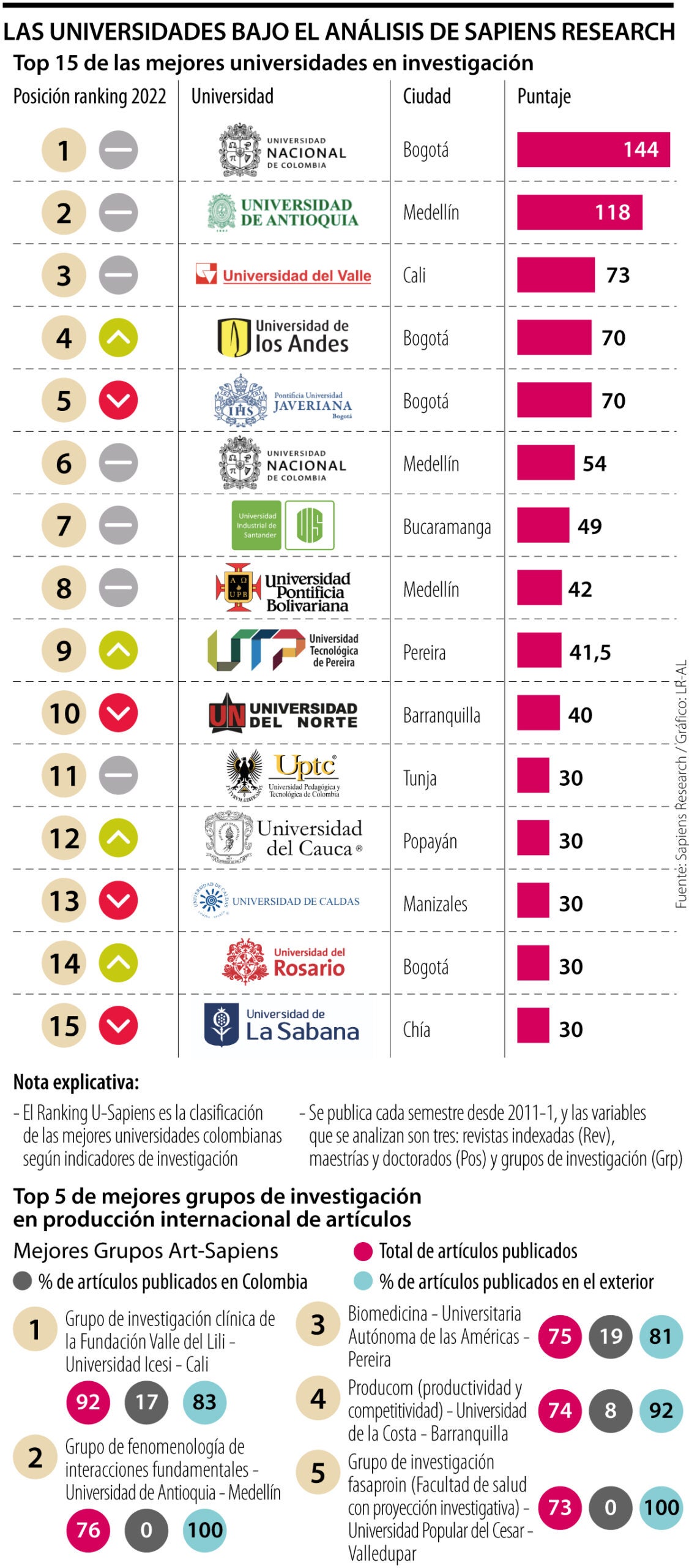 Para elaborar este ranking Sapiens Research mide las revistas indexadas, las maestrías y doctorados y los grupos de investigación.