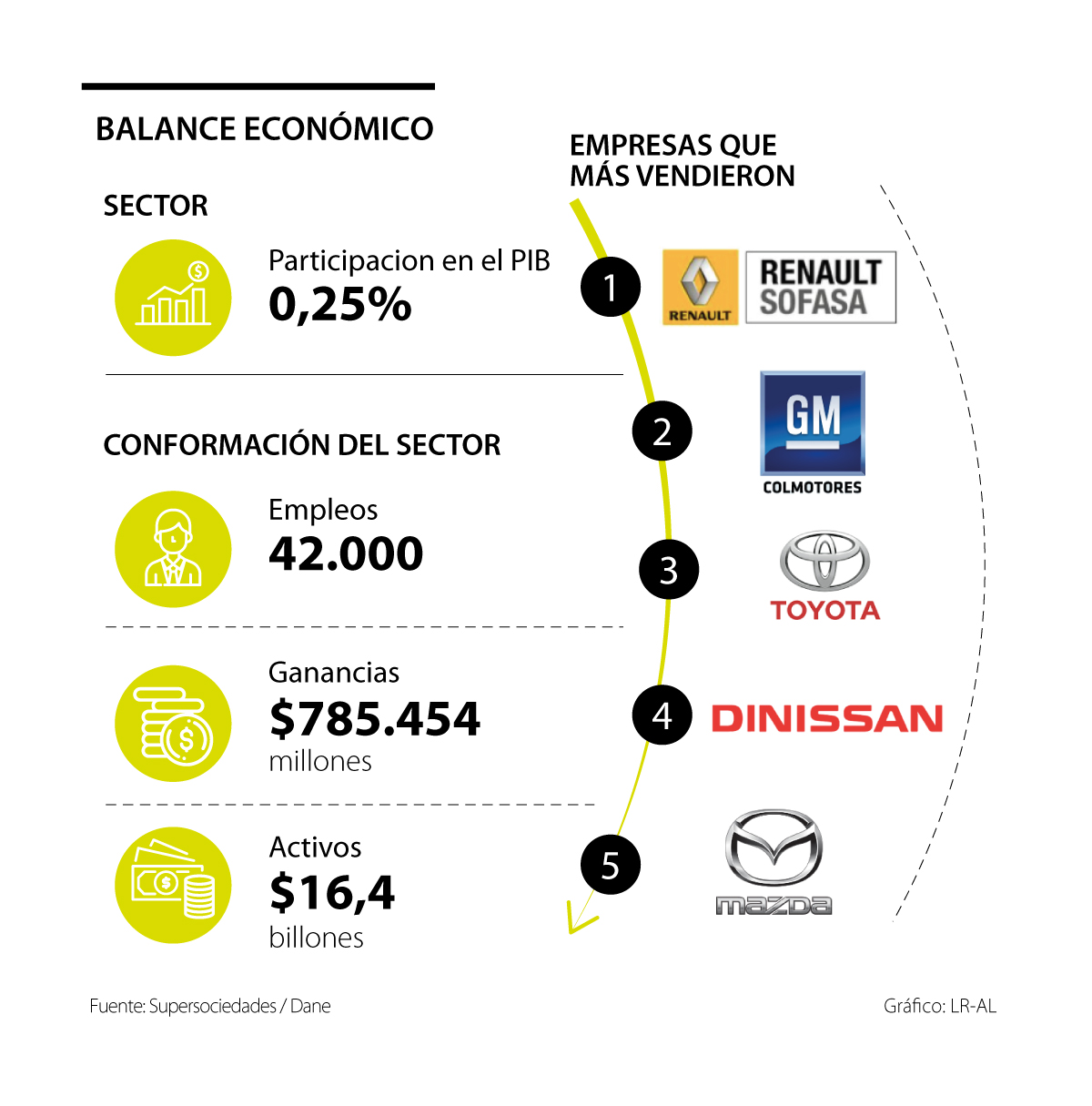 Estos resultados positivos del sector se vieron reflejados también en el informe de las 1.000 empresas más grandes, donde clasificaron 52 compañías de esta industria. Con $3 billones de ingresos, Renault-Sofasa fue la compañía que lideró el ranking sectorial, ocupando el puesto 35 en el listado general.