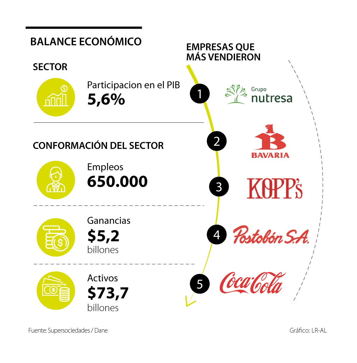 El sector brindó 650.000 empleos, reportó ganancias por $5,2 billones y registró activos por más de $73,7 billones. La lista de empresa la encabeza el Grupo Nutresa