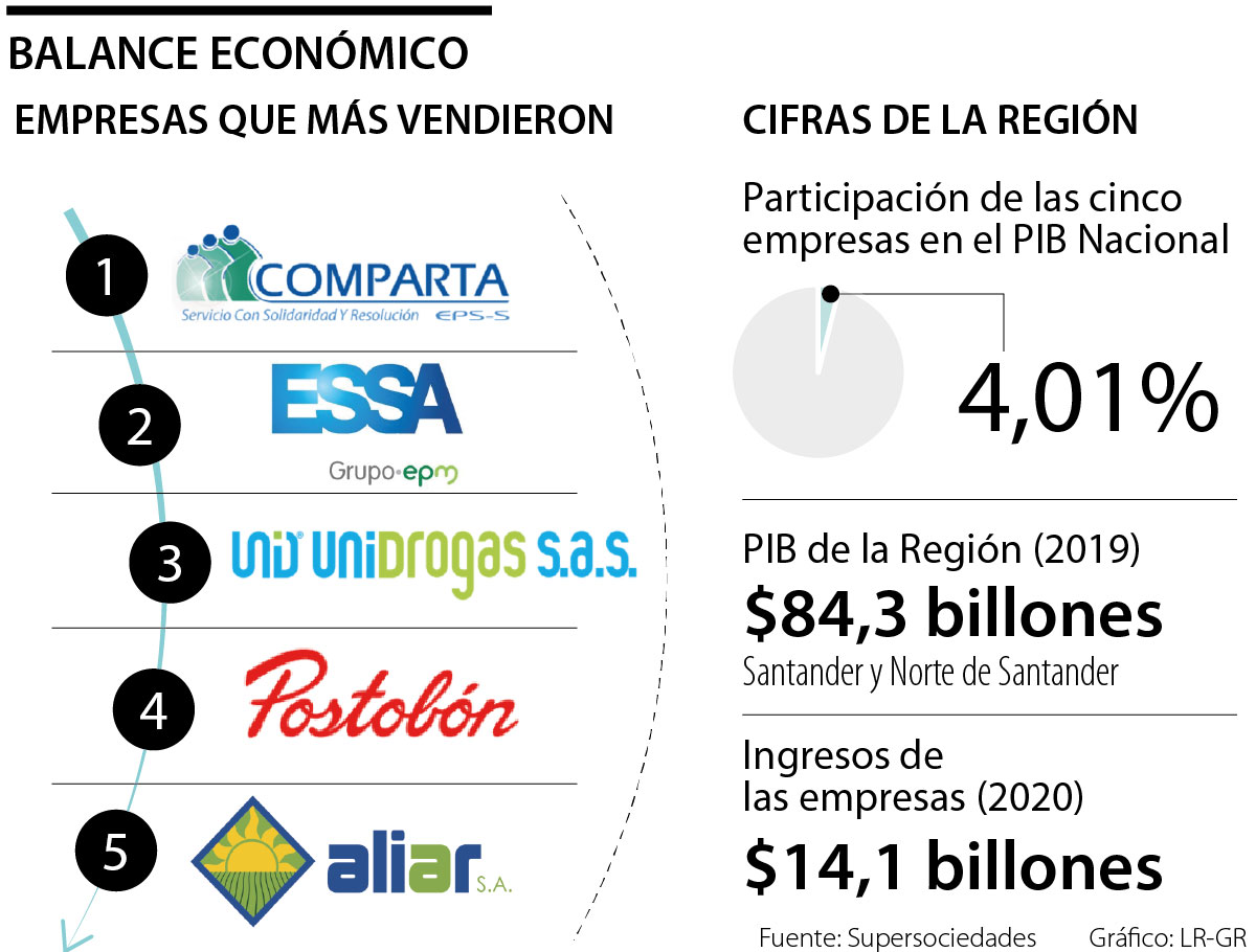 Este aumento se dio principalmente por los resultados en ingresos operacionales que arrojaron las cinco empresas que encabezaron el listado de las más vendedoras como Comparta EPS-S, Essa SA ESP, Unión de Droguistas (Unidrogas), Gaseosas Hipinto y Agropecuaria Aliar.