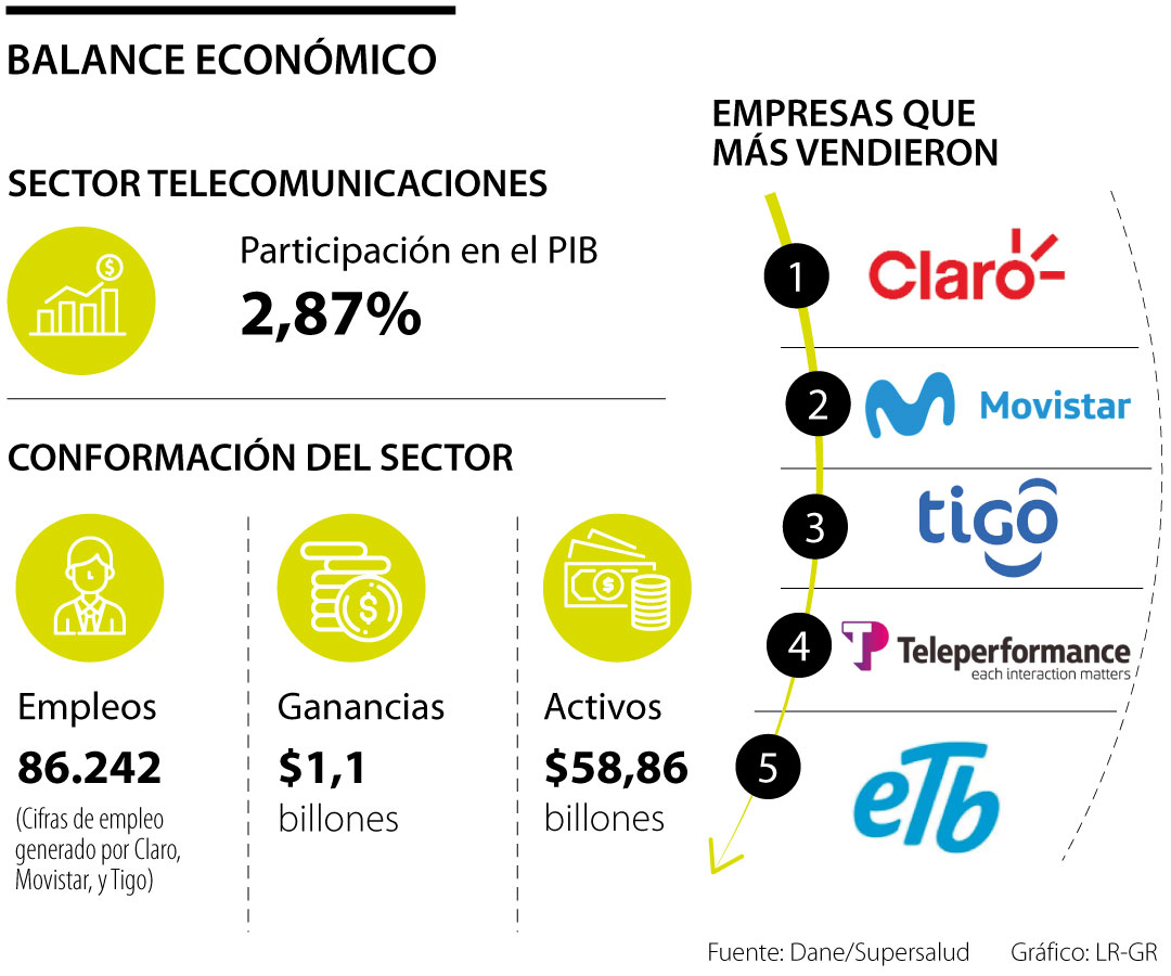 Por su parte, la compañía que ocupó la primera posición en este sector fue Claro con utilidades que ascendieron a $1,27 billones, 6,05% más de lo registrado en 2019. Además, sus ingresos operacionales incrementaron 4,96% y se ubicaron en $13,3 billones.