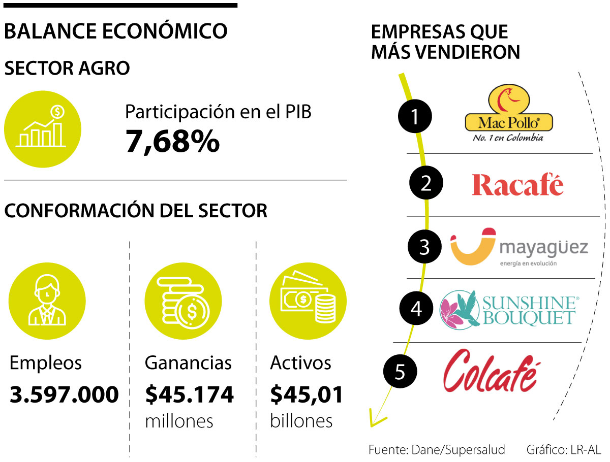 En total, las 70 empresas que producen y comercializan productos agropecuarios obtuvieron ingresos por $34,5 billones