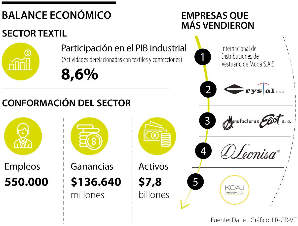 De las 1.000 empresas más grandes que reportan a la Superintendencia de Sociedades, 20 son del sector de textiles y confecciones, de acuerdo con el reporte presentado por la entidad. Estas empresas lograron registrar $7,2 billones de ingresos en 2020.