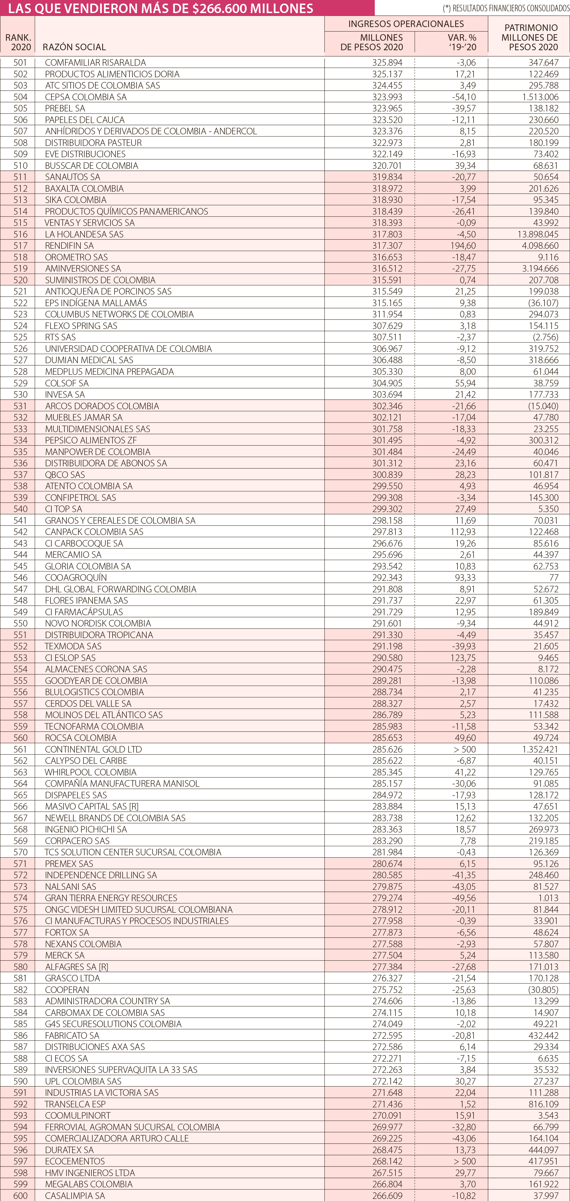 Según los datos publicados por la Superintendencia de Sociedades, los ingresos de las compañías que estuvieron entre la posición 501 y la 600 de las 1.000 más grandes de Colombia, sumaron casi $29,4 billones el año pasado.