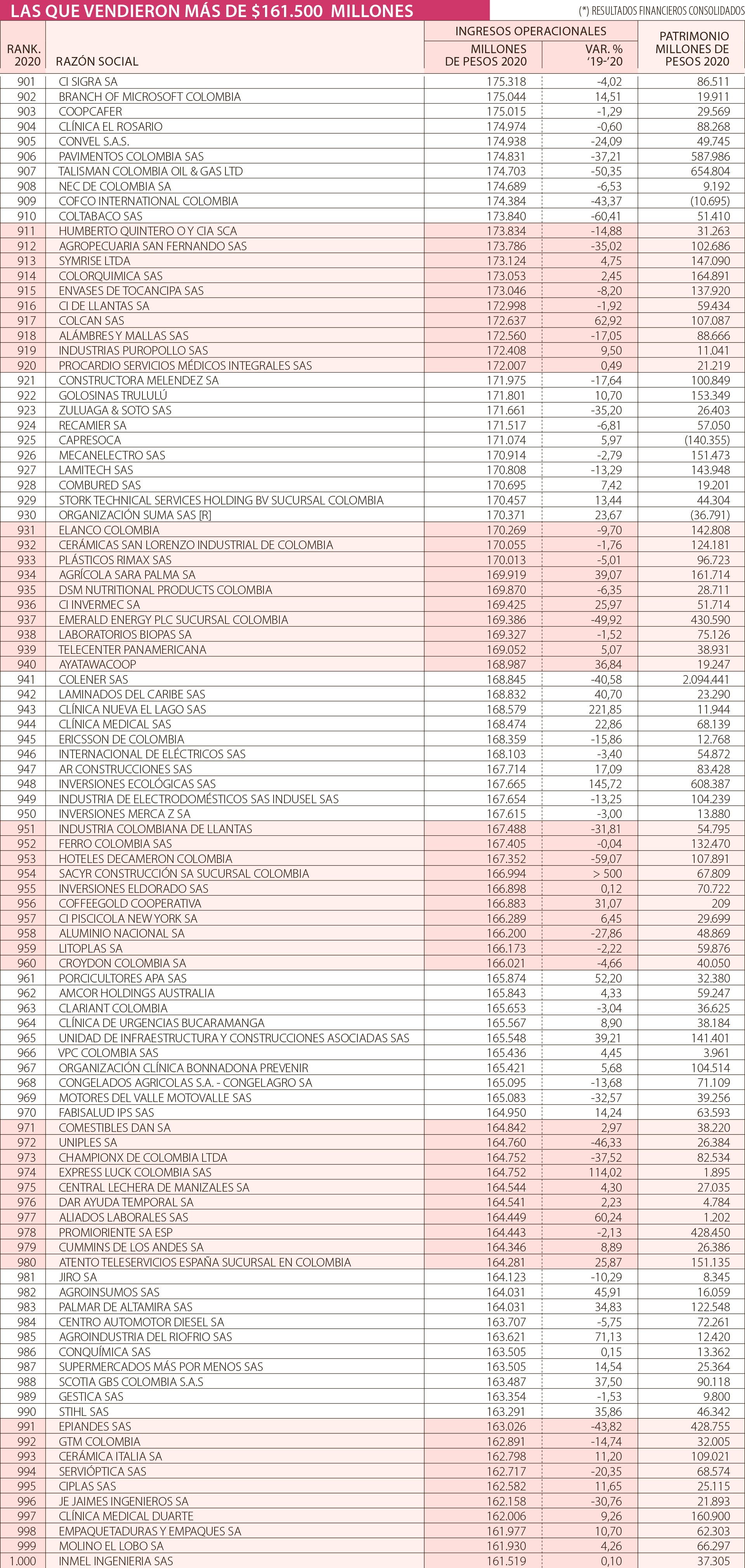 En el último grupo de compañías, de la 901 a la 1.000, se alcanzaron ingresos totales por $16,7 billones, 0,64% menos que en 2019, época en que se facturaron $17,08 billones.