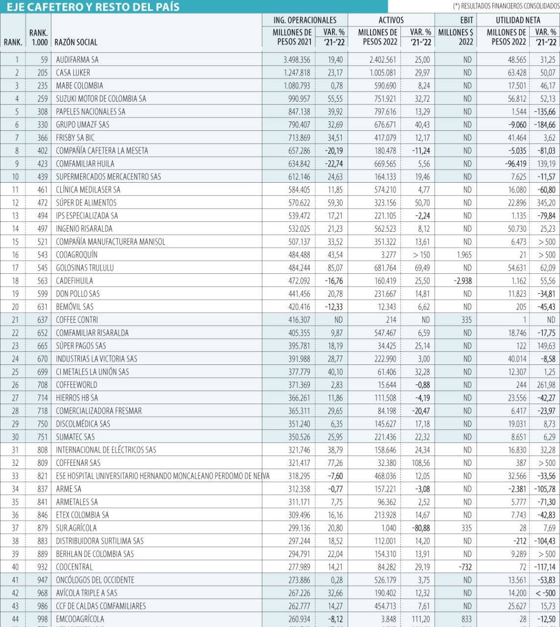 Las empresas del Eje Cafetero y del resto del país sumaron ingresos por $24,03 billones el año pasado y, entre los movimientos más llamativos, estuvo el crecimiento que tuvo Casa Luker, que no solo logró consolidar en el podio, sino que ganó una posición y ahora es la segunda más vendedora de esta región.