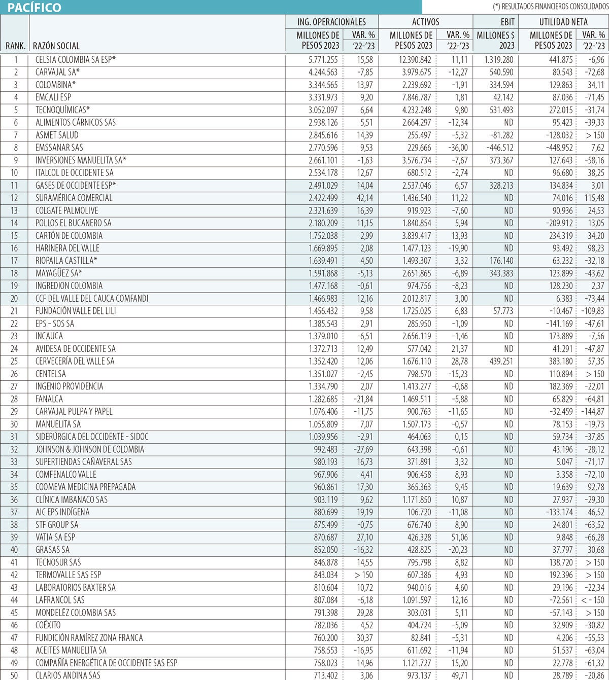 Ventas del Pacífico fueron de $107 billones y Celsia se mantiene en la primera posición