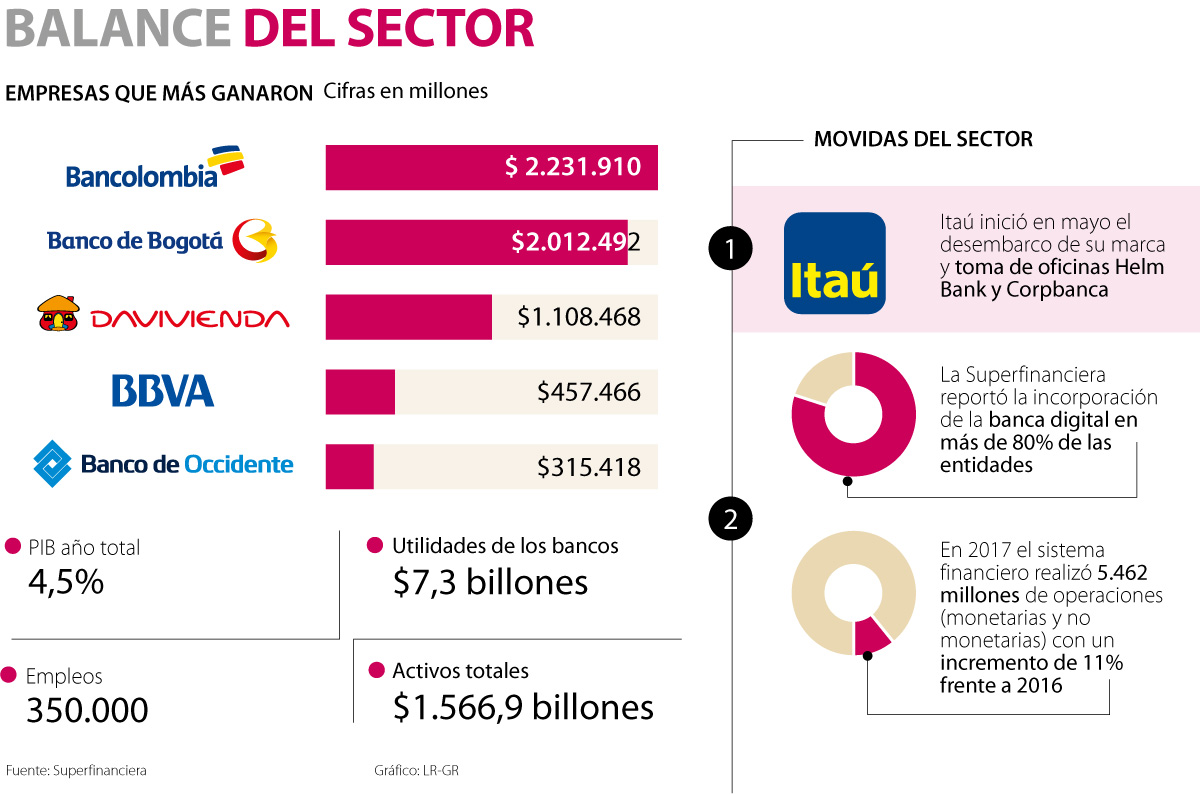 Los activos del sector financiero el año pasado sumaron $1.566,9 billones, un alza de 7,6% frente a 2016.