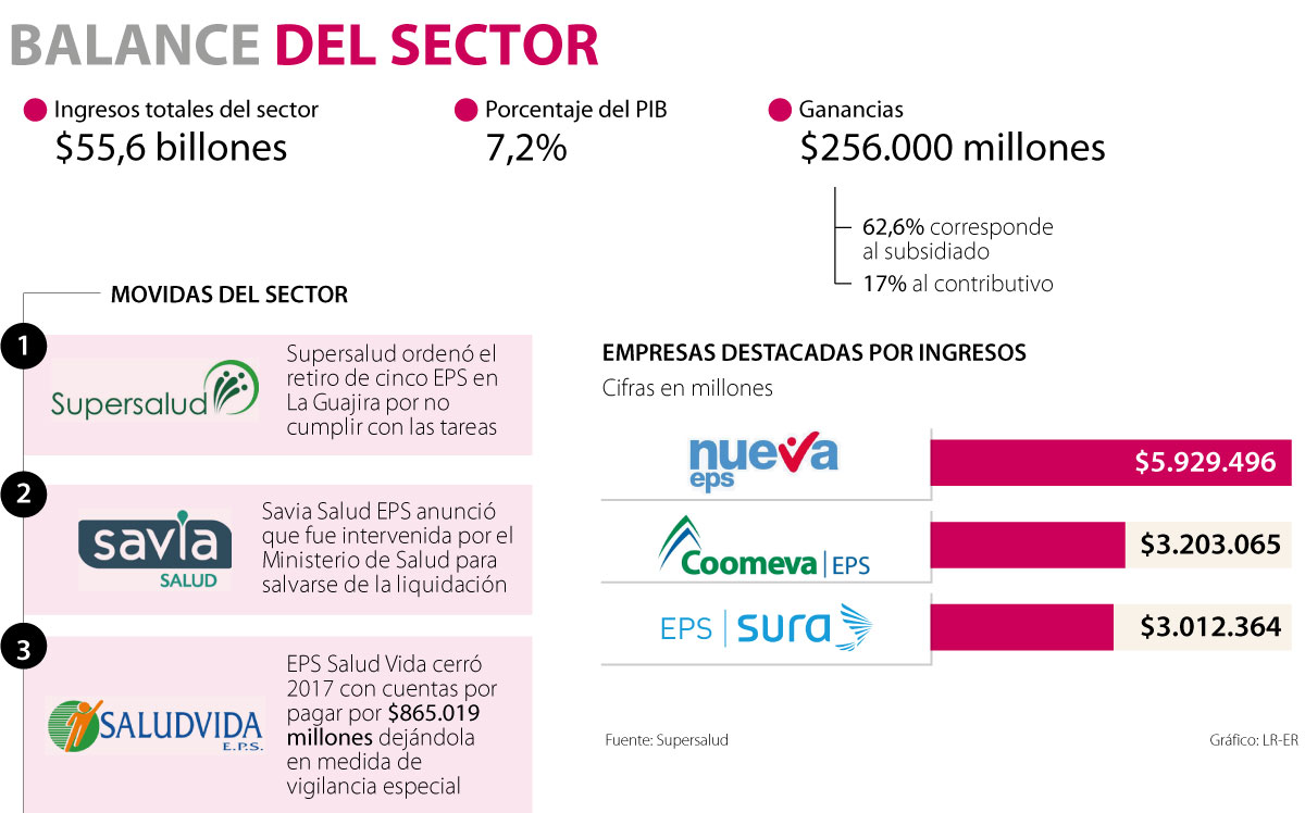 $55,5 fueron los ingresos que generaron las EPS, IPS y servicios complementarios, como ARL y Soat durante 2017, según la superintendencia de salud.
