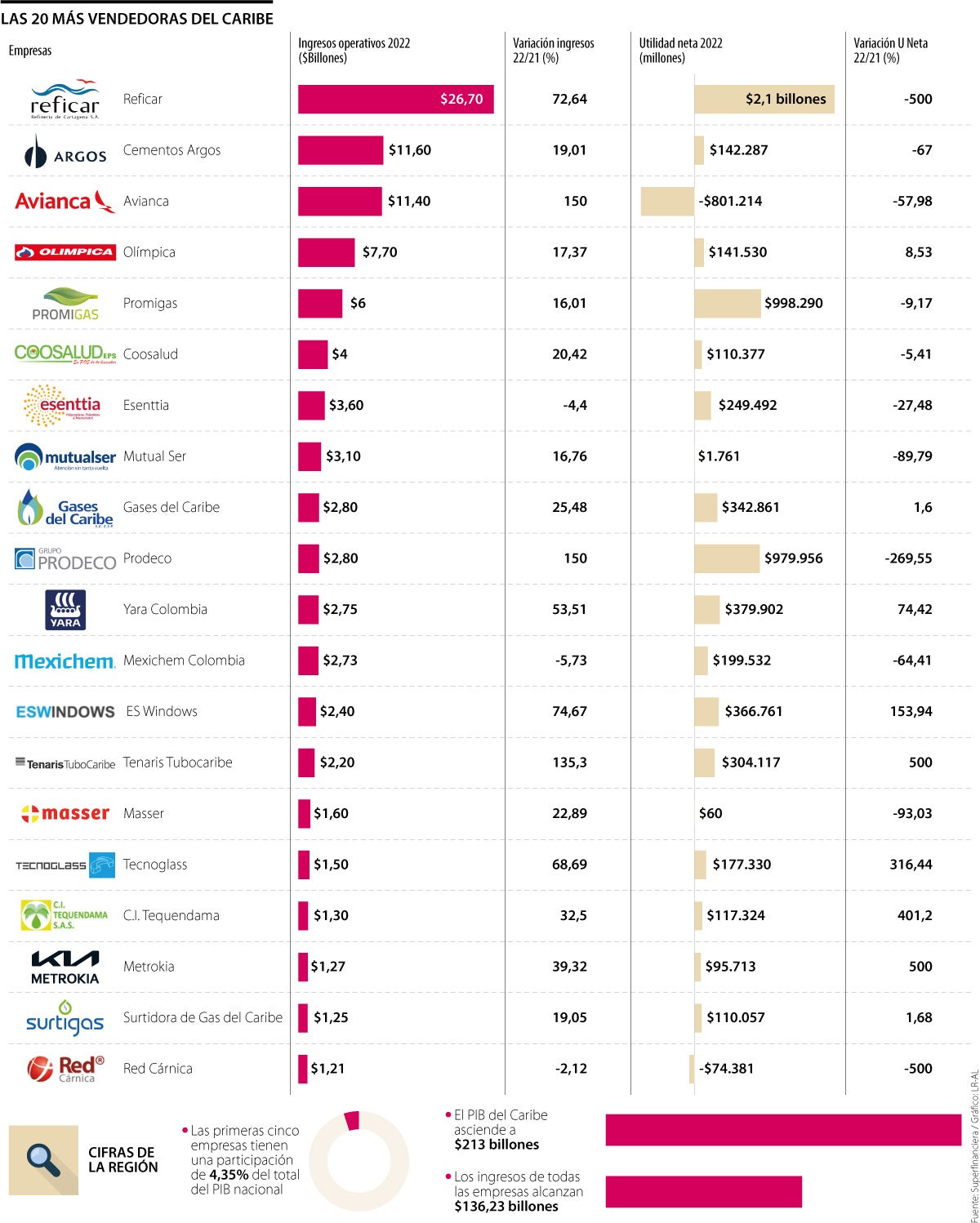 Una de las regiones que más pesa en la economía es la región Caribe. Aquí le decimos cuáles son las empresas con más ingresos